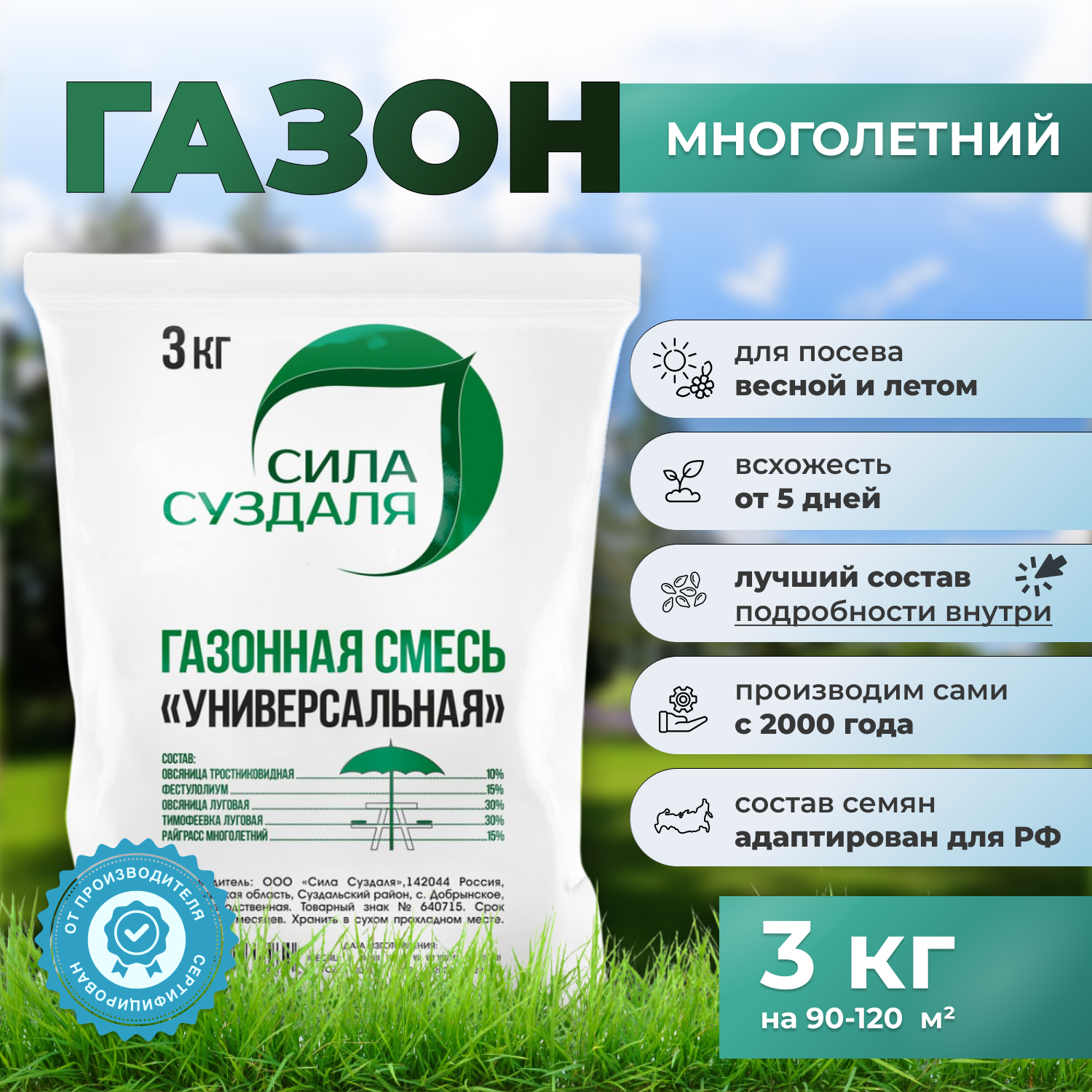 Семена газонной травы "Универсальный" 3 кг Сила Суздаля, семена газон интересное: