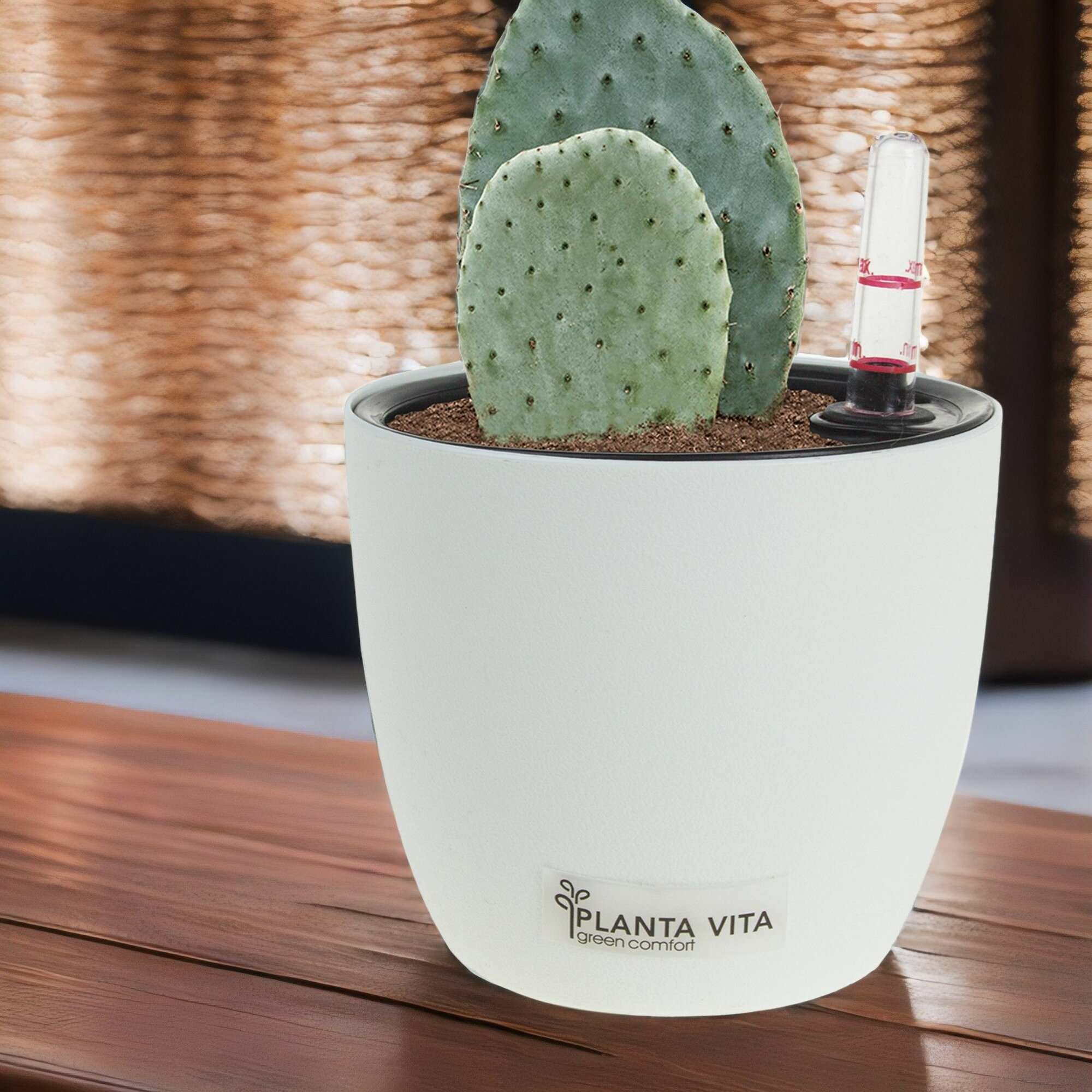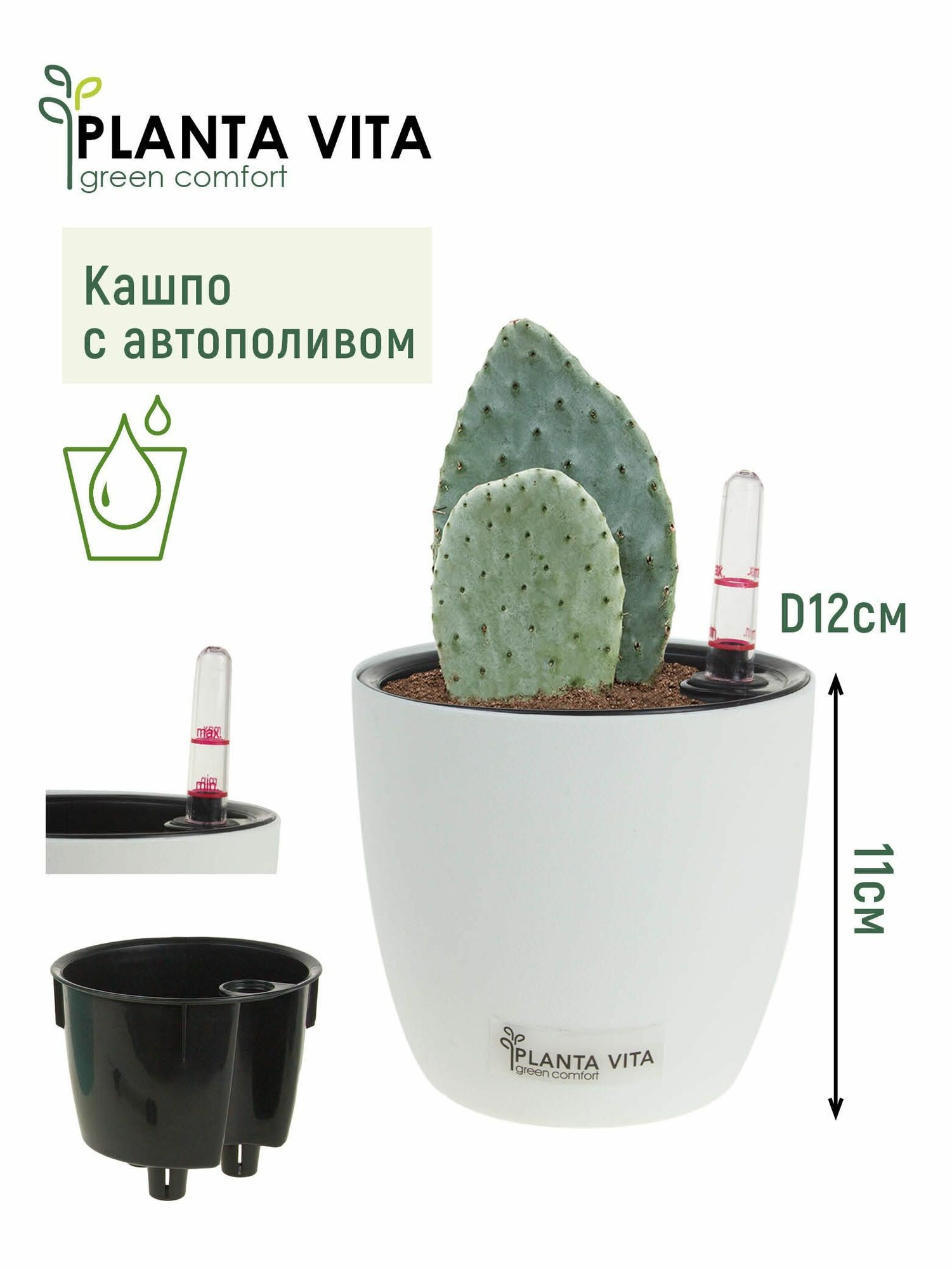 Кашпо для цветов суккулентов кактусов с автополивом пластиковое PLANTA VITA Round Matt white горшок настольный для декора D12xH11 см интересное: