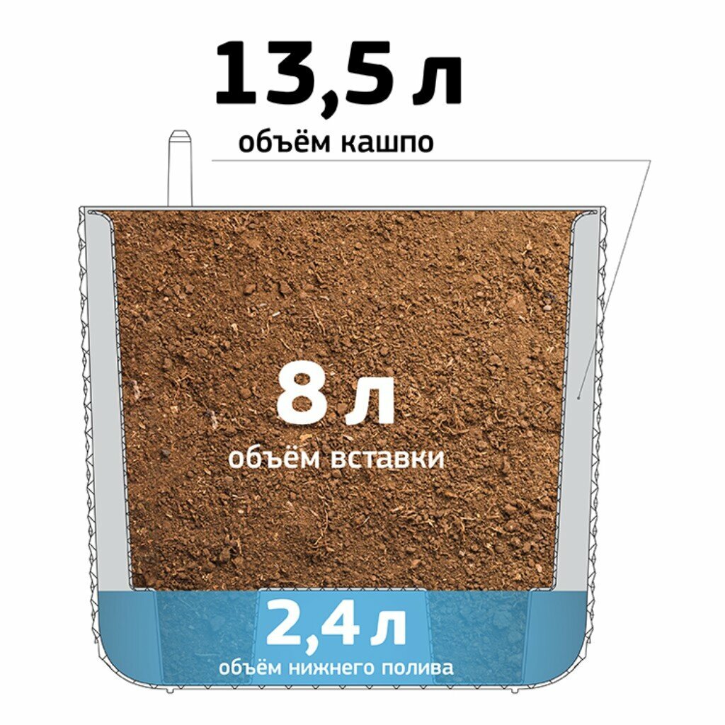 СохранитьКашпо Idea 13,5 литров со вставкой 8л и автополивом Фасет 28 см х 25,5 см, графит 1шт интересное: