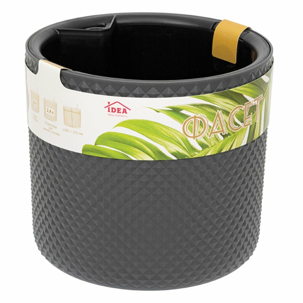 Купить Кашпо Idea 13,5 литров со вставкой 8л и автополивом Фасет 28 см х 25,5 см, графит 1шт