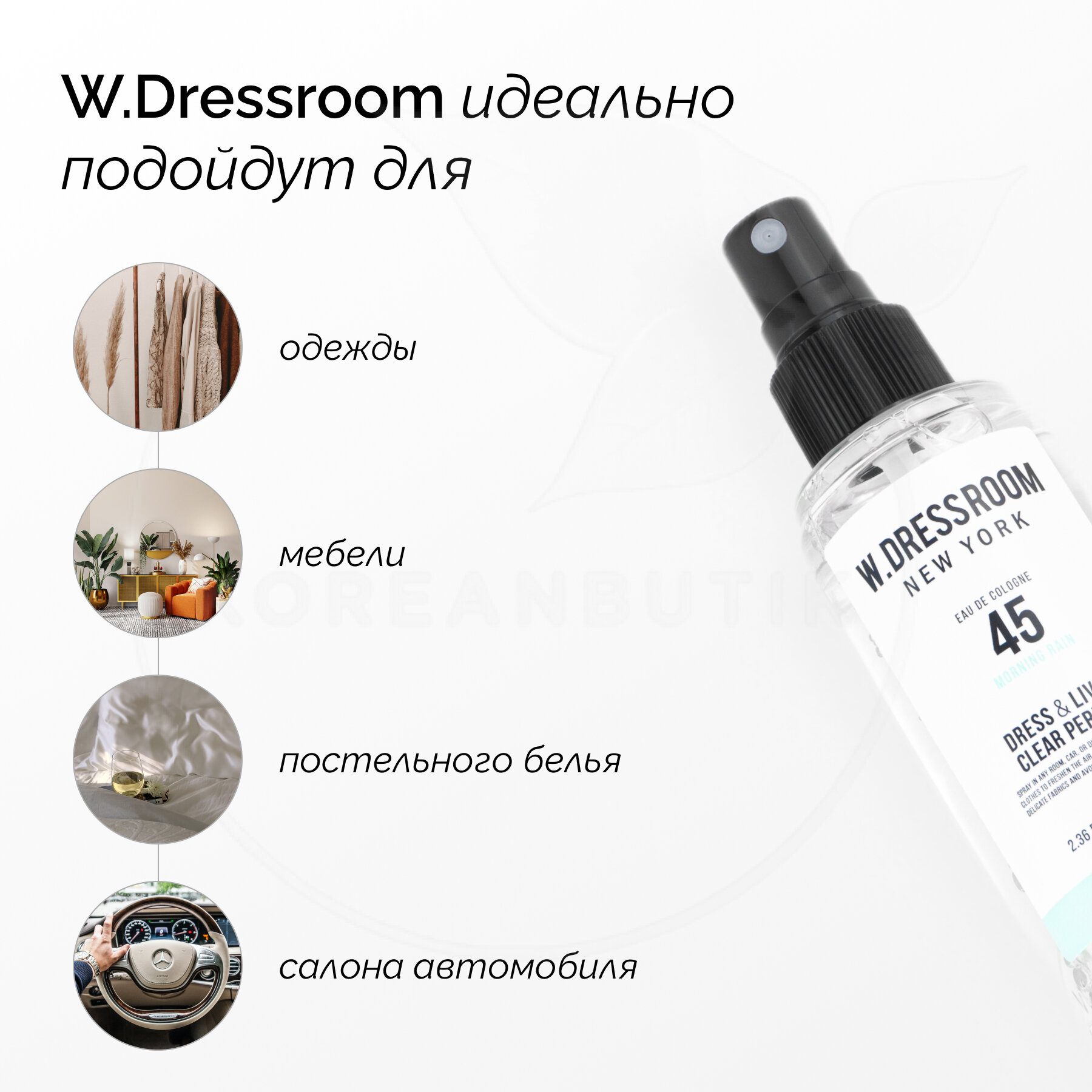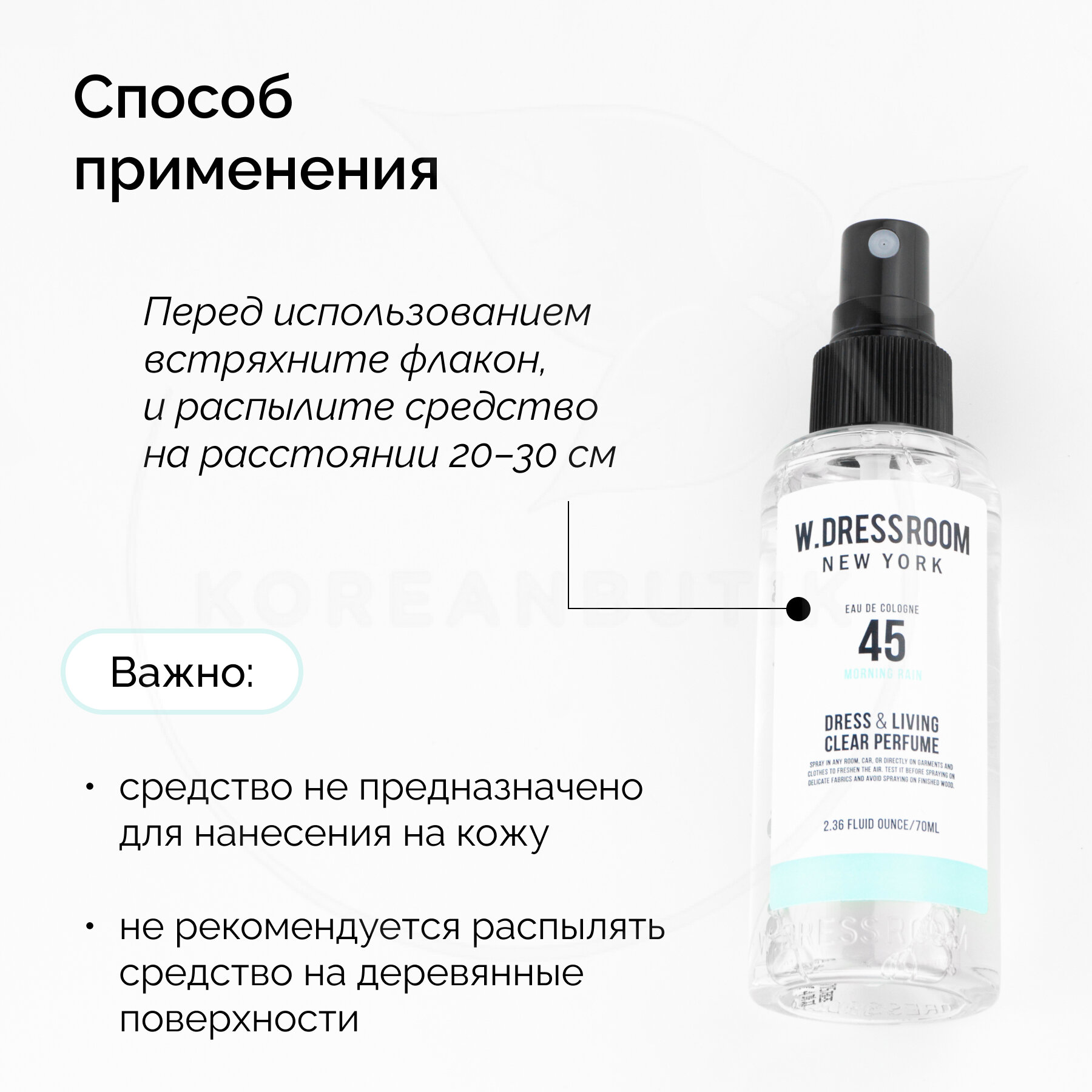Парфюмированный спрей W.Dressroom Dress & Living Clear Perfume No.45 Morning Rain 70 ml/ Спрей для одежды/Дрессрум/BTS интересное: