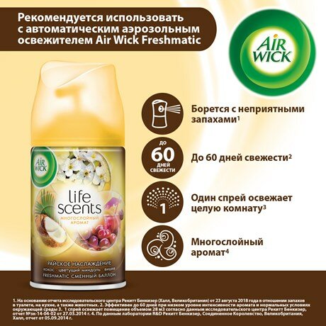 | Дополнительная информация | используйте только с диспенсером Air Wick Freshmatic |