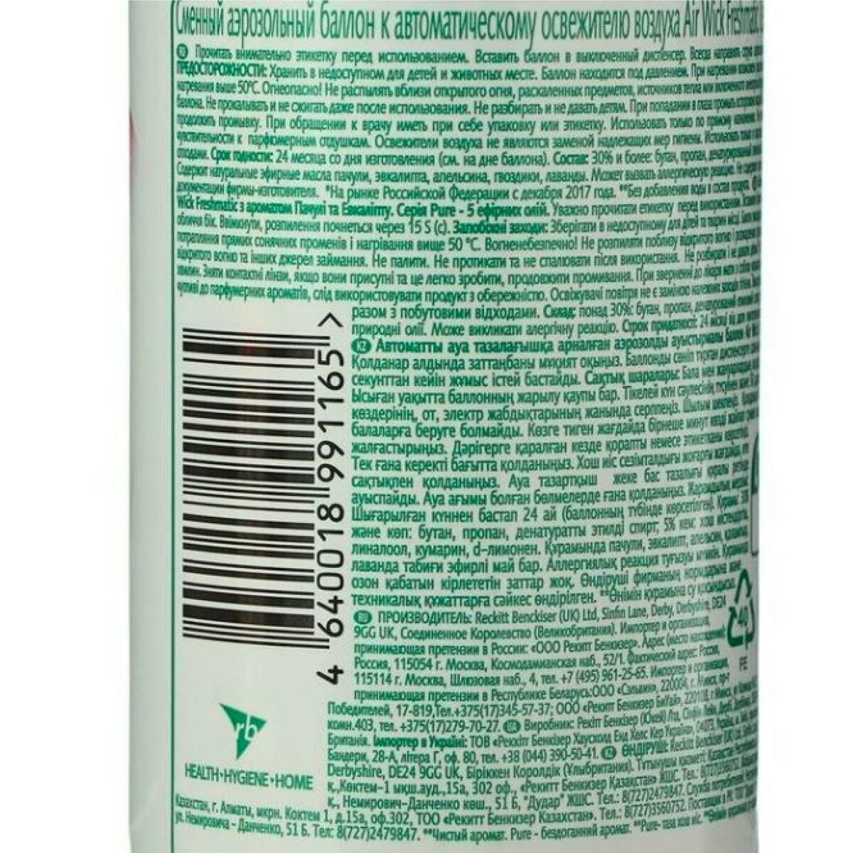 | Дополнительная информация | используйте только с диспенсером Air Wick Freshmatic |
