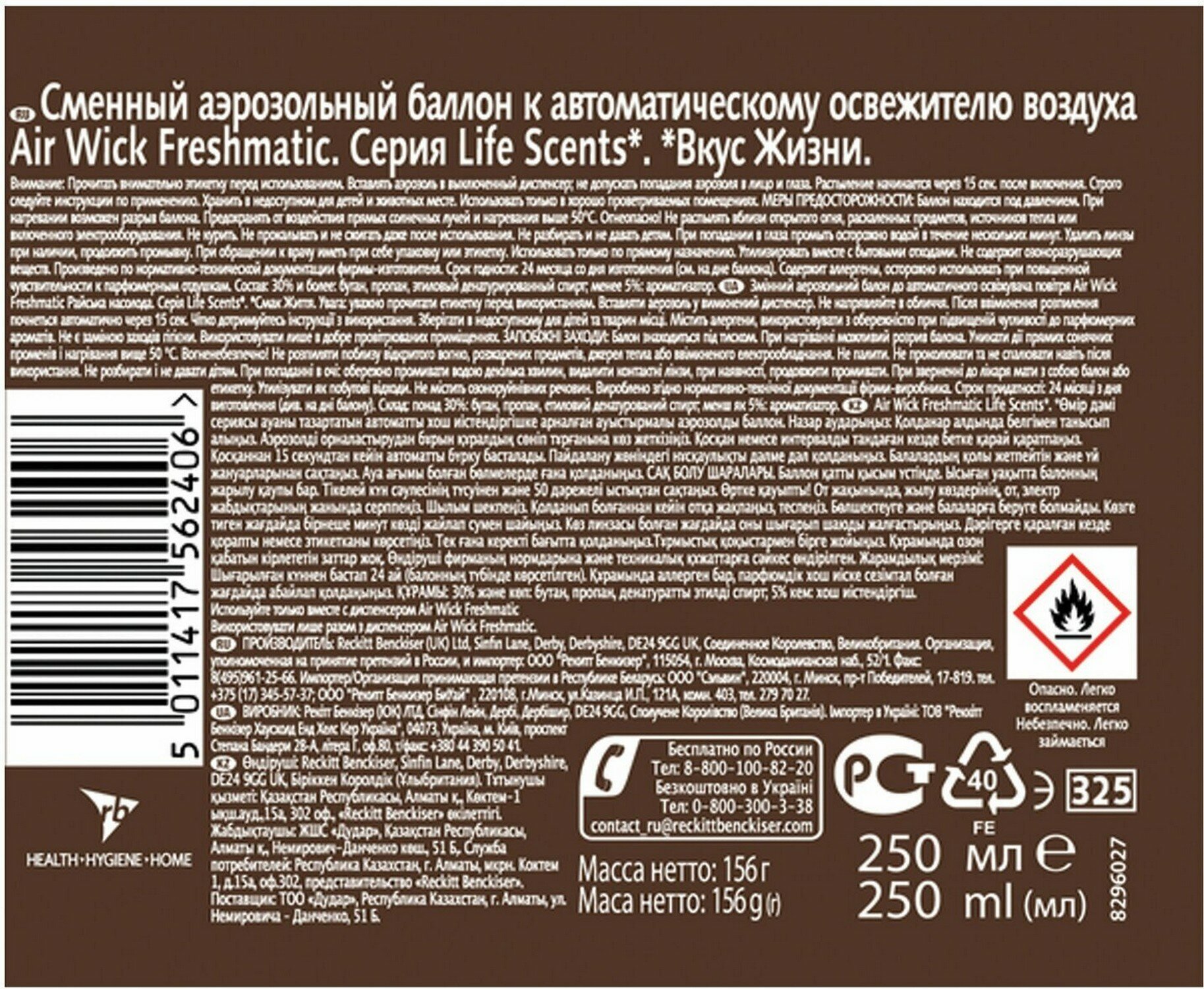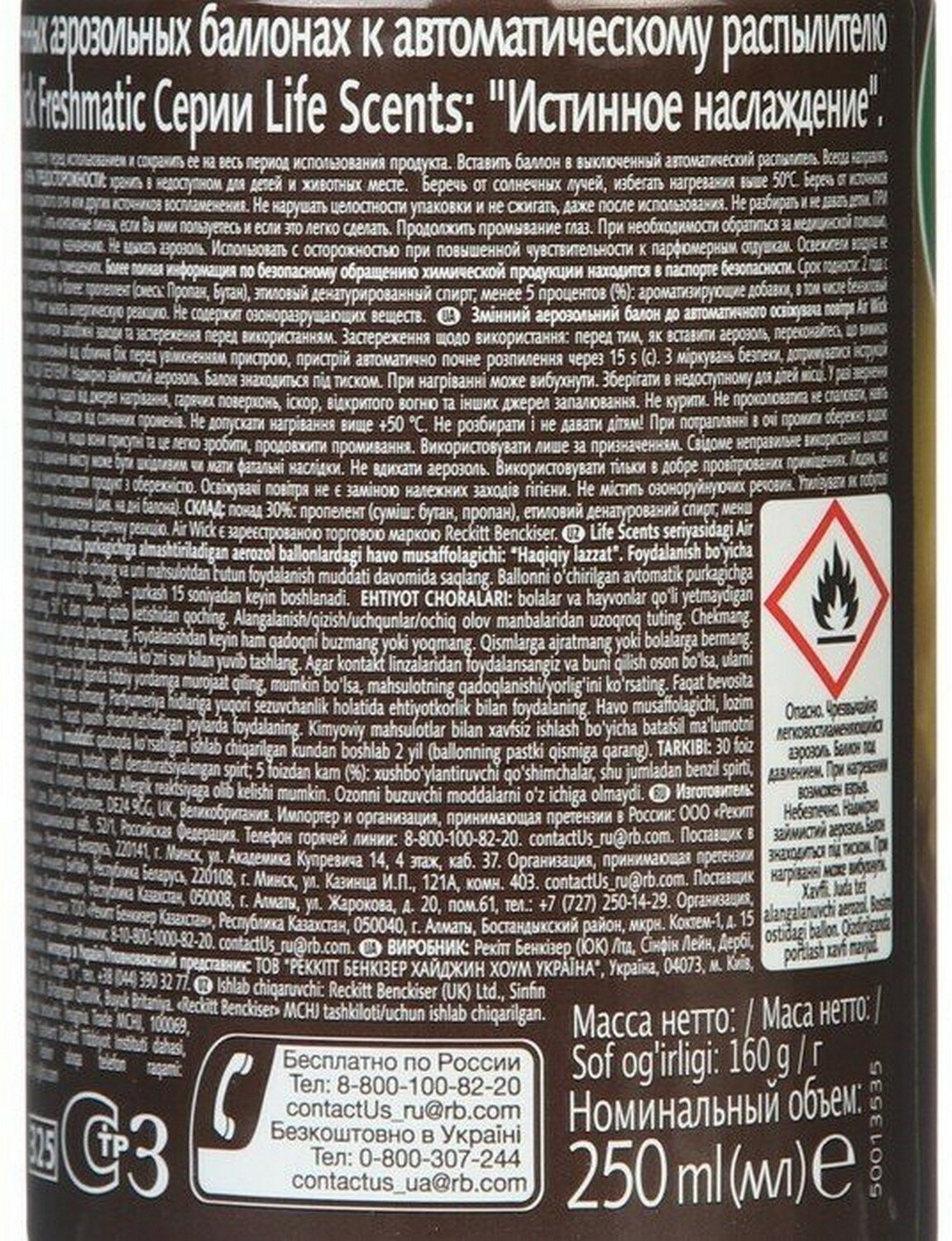 | Дополнительная информация | используйте только с диспенсером Air Wick Freshmatic |