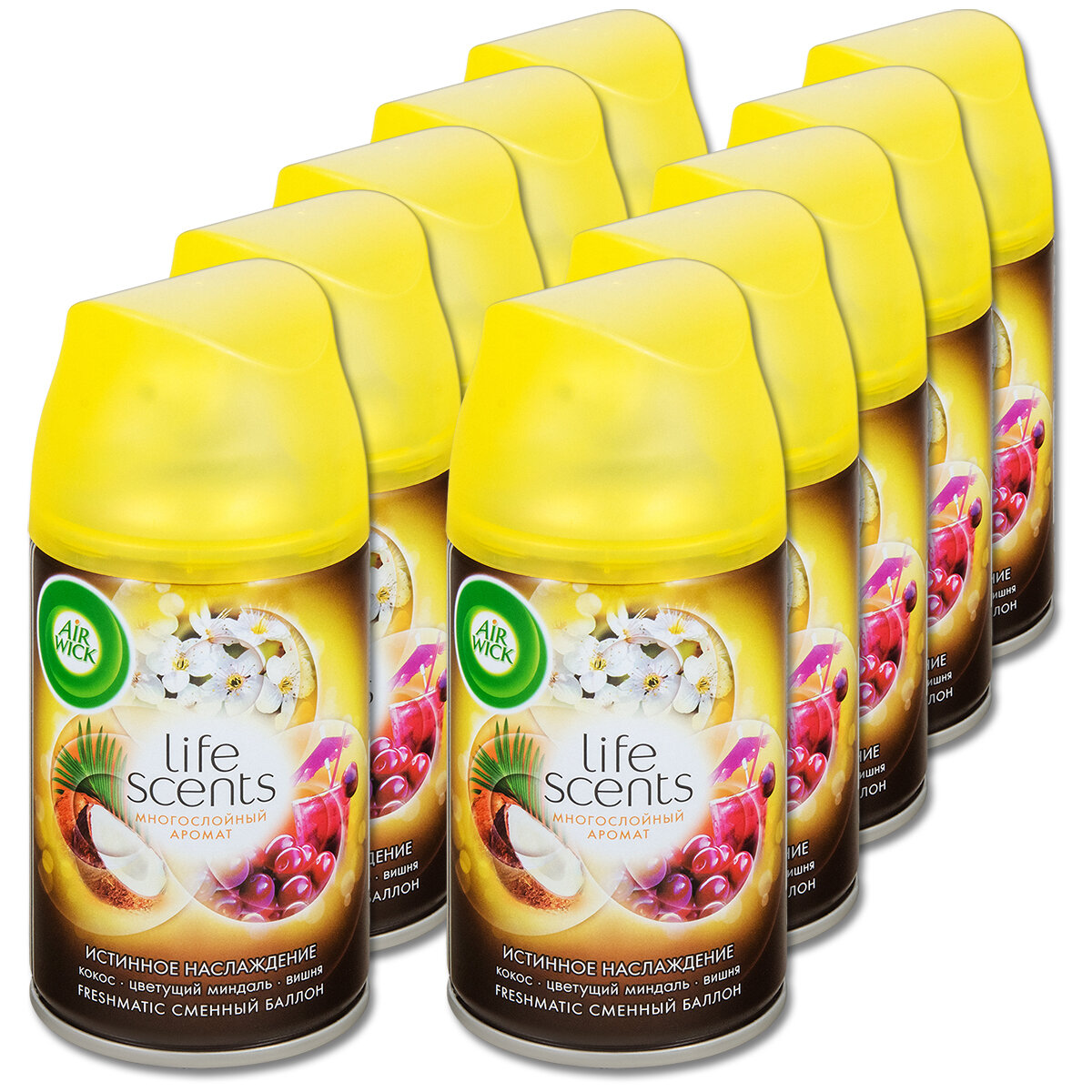 Купить Сменный баллон для освежителя воздуха AirWick Freshmatic Life Scents "Истинное наслаждение", 250 мл, 10 шт.