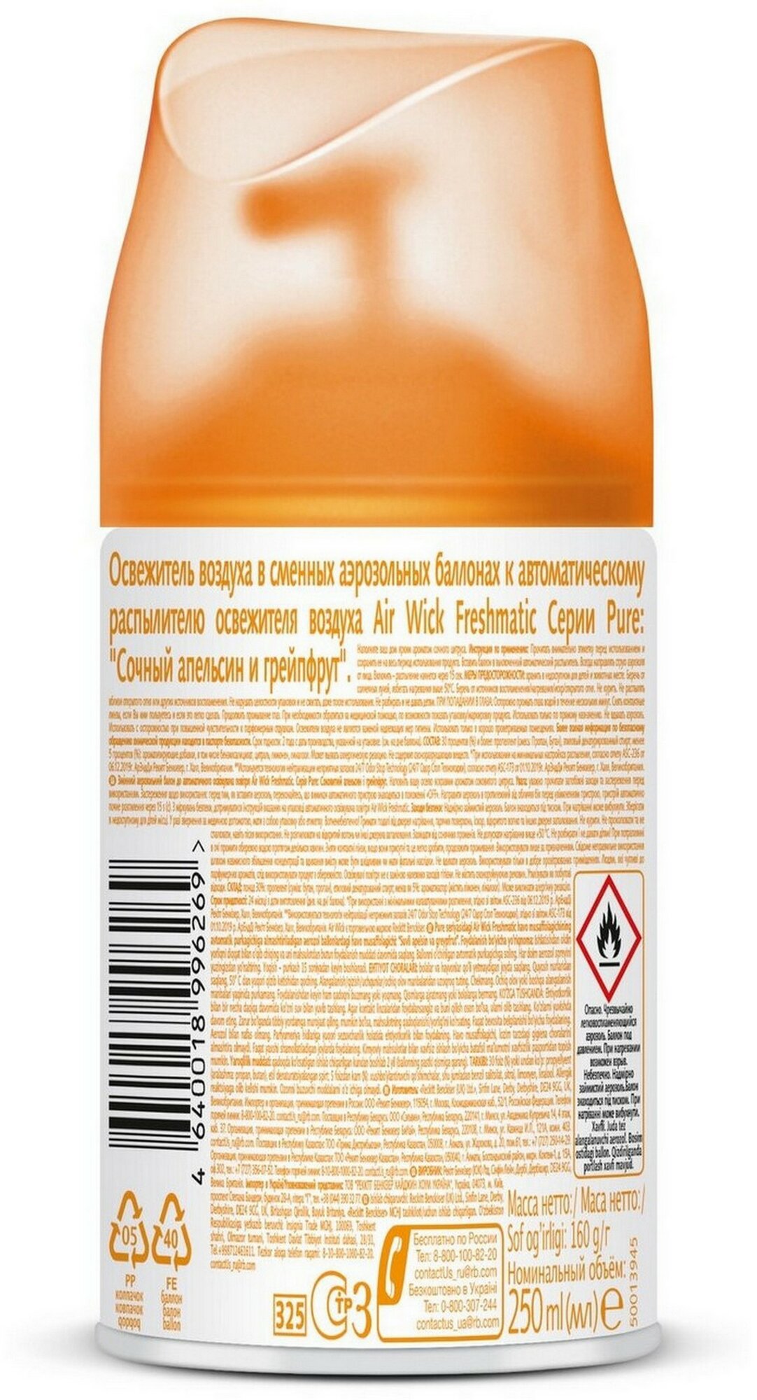 Сменный баллон освежителя воздуха к автоматическому распылителю Air Wick Freshmatic Сочный апельсин и грейпфрут, 250 мл