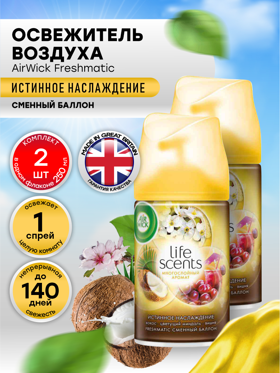 Сменный баллон для освежителя воздуха AirWick Freshmatic Life Scents "Истинное наслаждение", 250 мл, 10 шт.