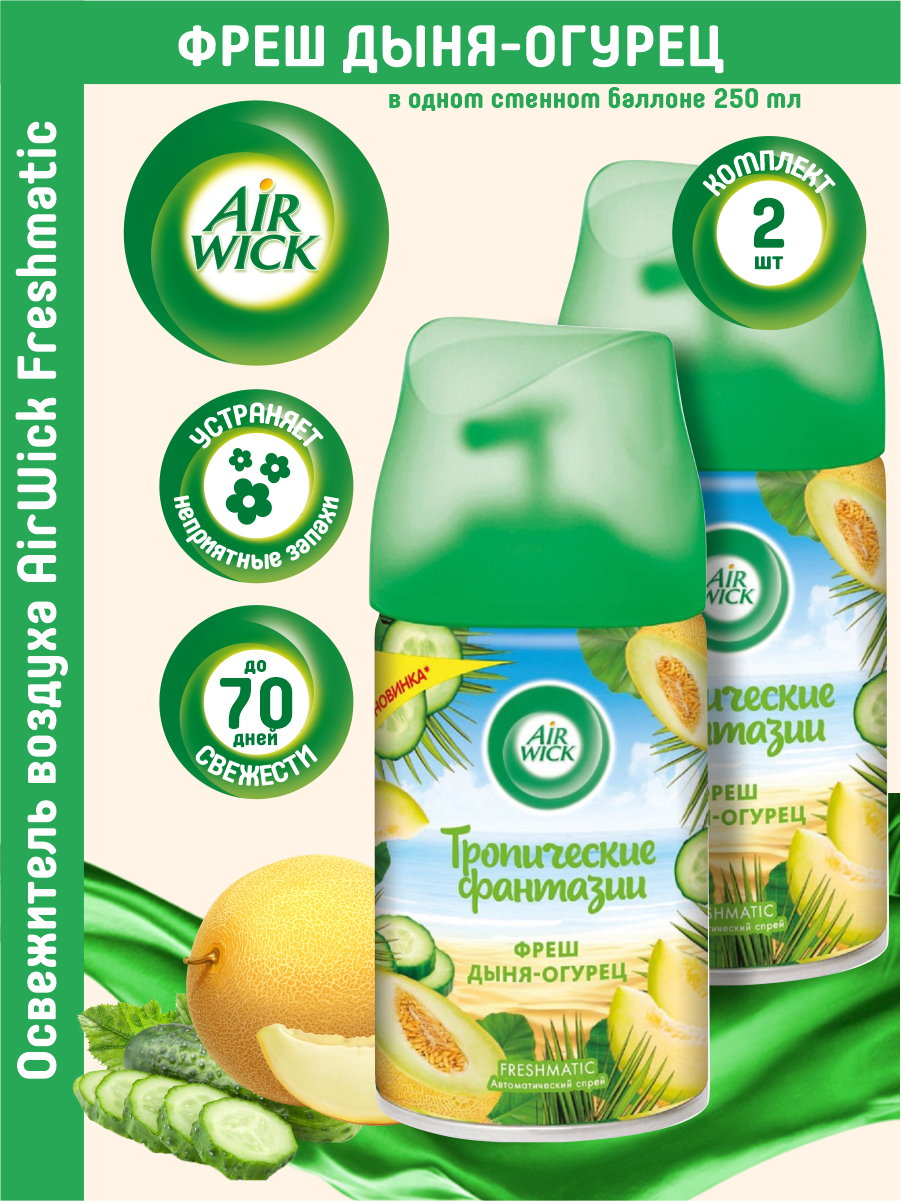 Купить AIRWICK Сменный баллон к автоматическому освежителю воздуха Фреш дыня-огурец 250 мл. х 2 шт