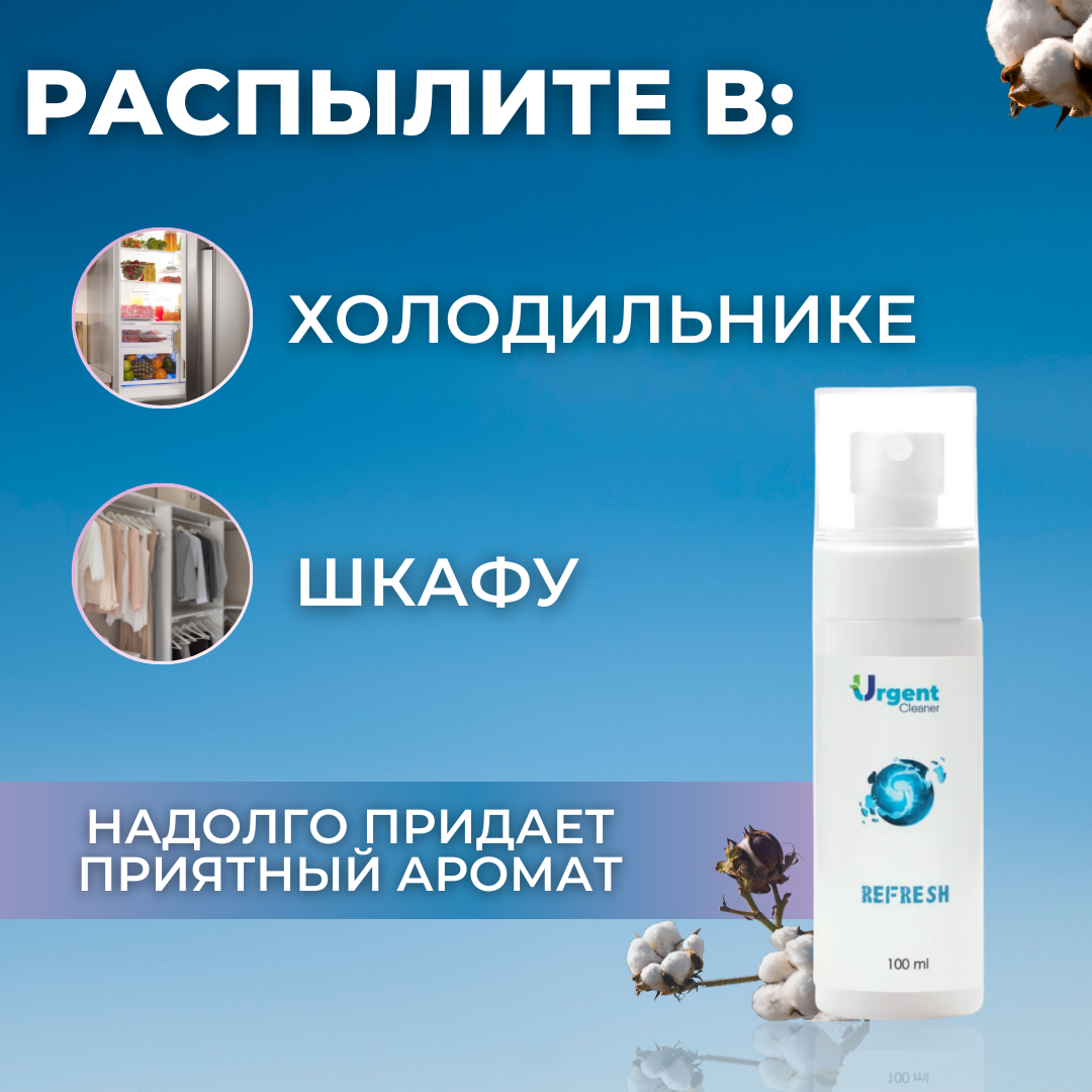 Ароматизатор Urgent для шкафа,дома,белья, с ароматом хлопка, спрей 100мл