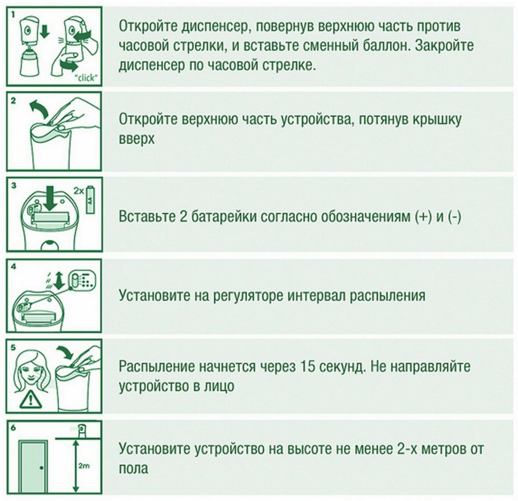 | Дополнительная информация | баллон для автоматического освежителя воздуха Air Wick Freshmatic; перед тем, как вставить аэрозоль, проверьте, что диспенсер выключен; не направляйте в лицо при включении или при установке интервала распыления; после включения распыление начнется автоматически через 15 сек |