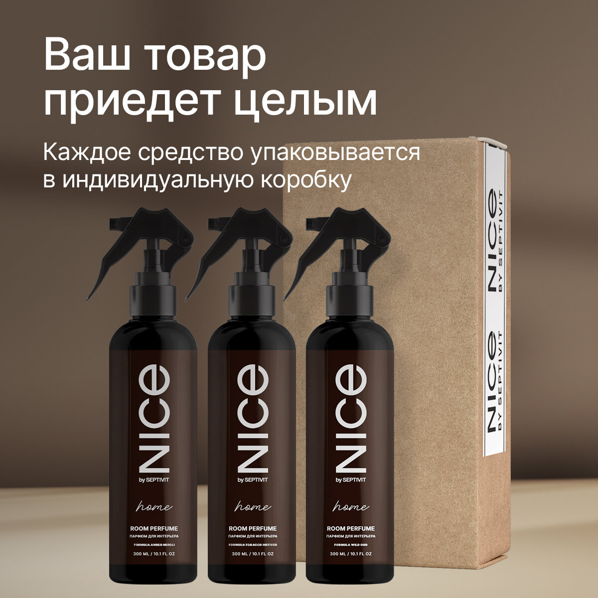 Купить Освежитель воздуха / Ароматизатор для дома / Набор парфюмов для дома NICE by Septivit "Brown" 300 мл х3шт
