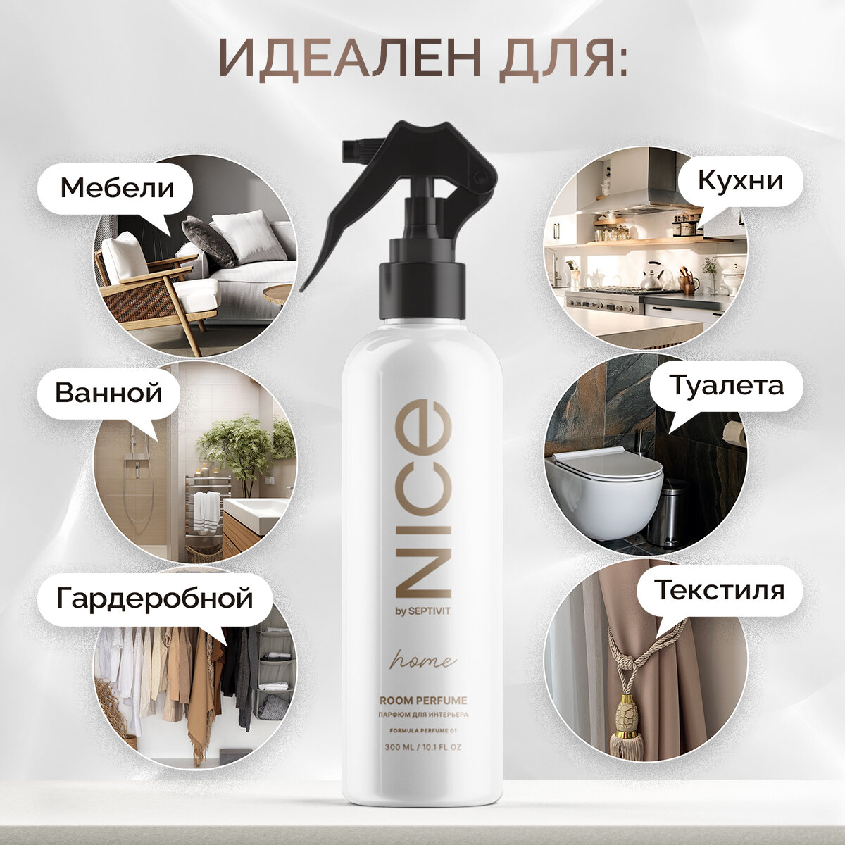 Освежитель воздуха / Ароматизатор для дома / Парфюм для дома NICE by Septivit "Formula 01" 300мл интересное: