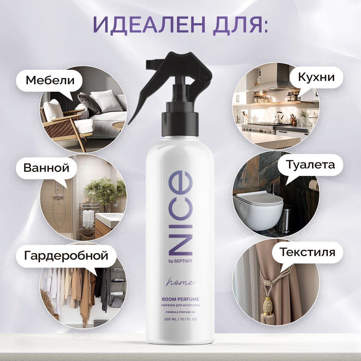 Освежитель воздуха / Ароматизатор для дома / Парфюм для дома NICE by Septivit "Formula 03" 300мл интересное: