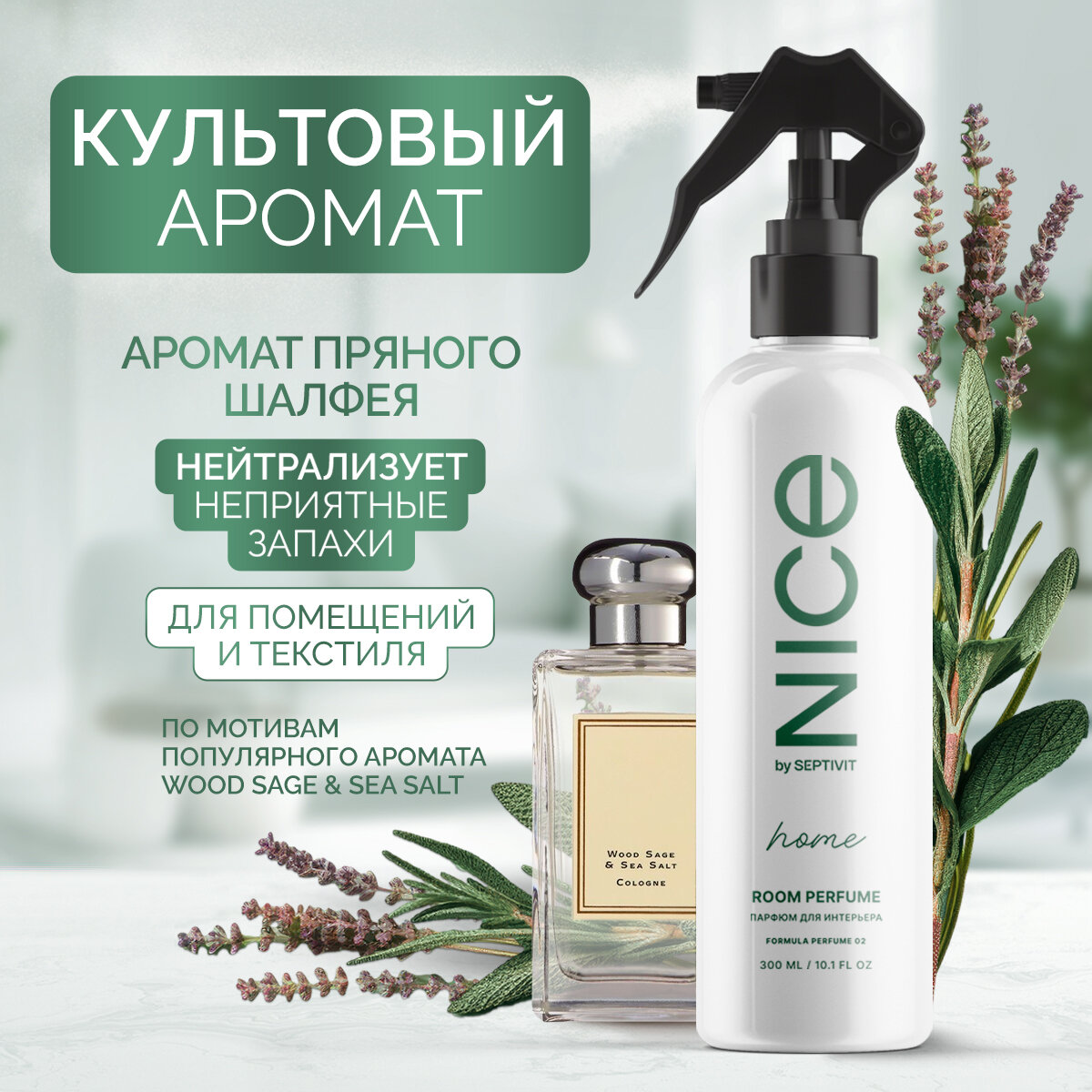 Купить Освежитель воздуха / Ароматизатор для дома / Парфюм для дома NICE by Septivit "Formula 02" 300мл