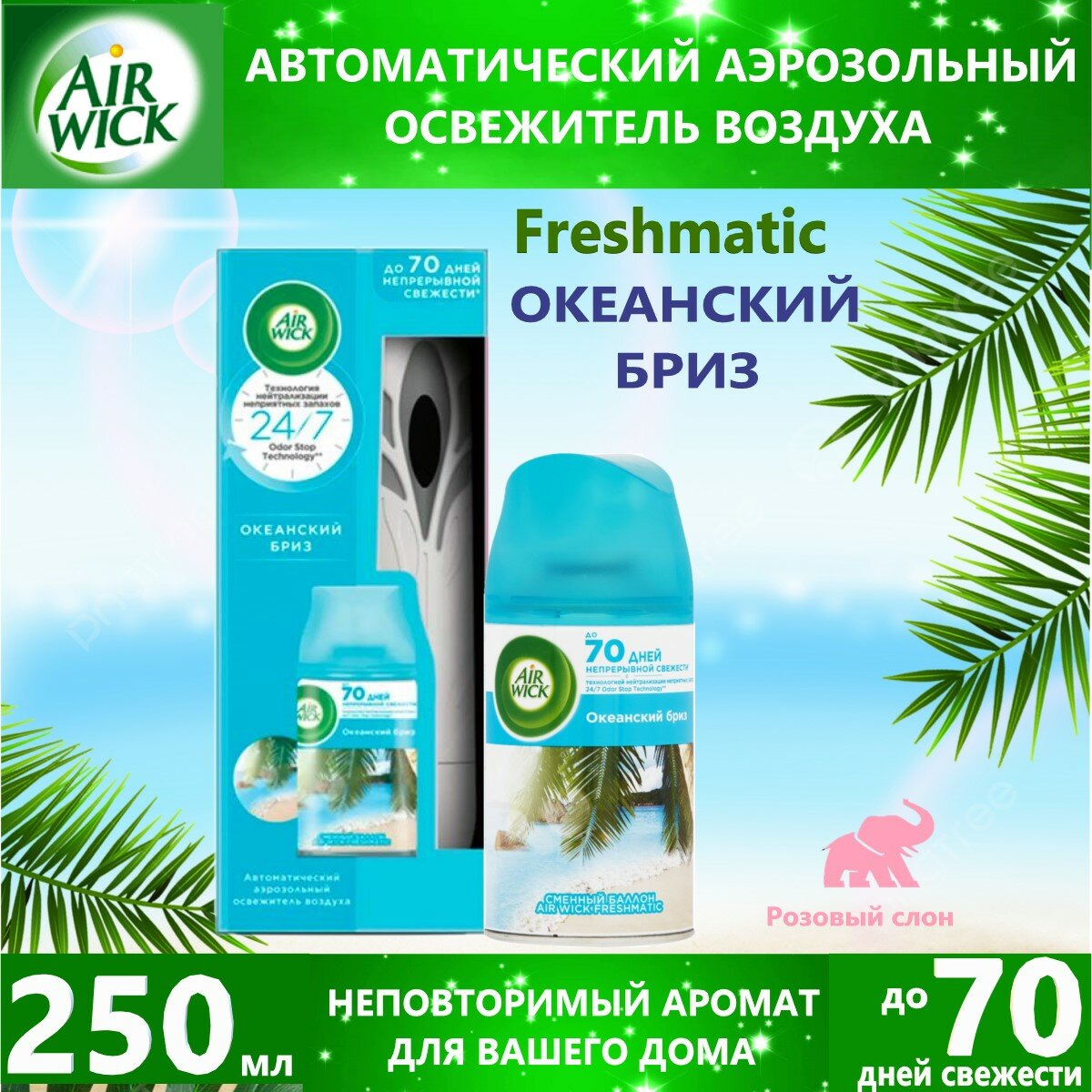 СохранитьАвтоматический аэрозольный освежитель воздуха Air Wick Freshmatic со сменным баллоном с ароматом Океанский бриз, 250 мл 1 шт. интересное: