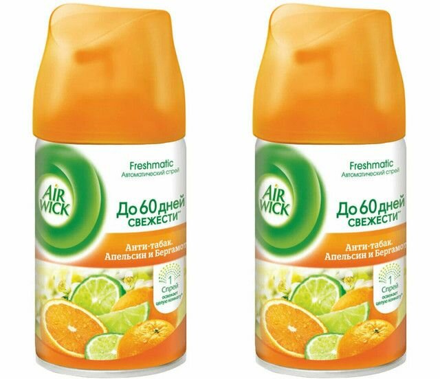 Купить AirWick Сменный баллон освежителя воздуха Анти-табак, Апельсин и Бергамот, 250 мл, 2 штуки