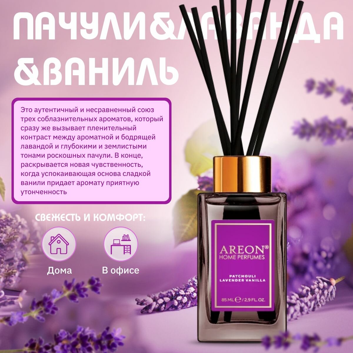 Аромадиффузор Areon Home Sticks premium, 85 мл, Пачули-лаванда-ваниль интересное: