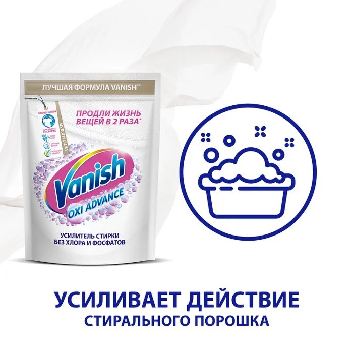 Пятновыводитель и отбеливатель Vanish Oxi Advance порошкообразный для белых тканей 400г интересное: