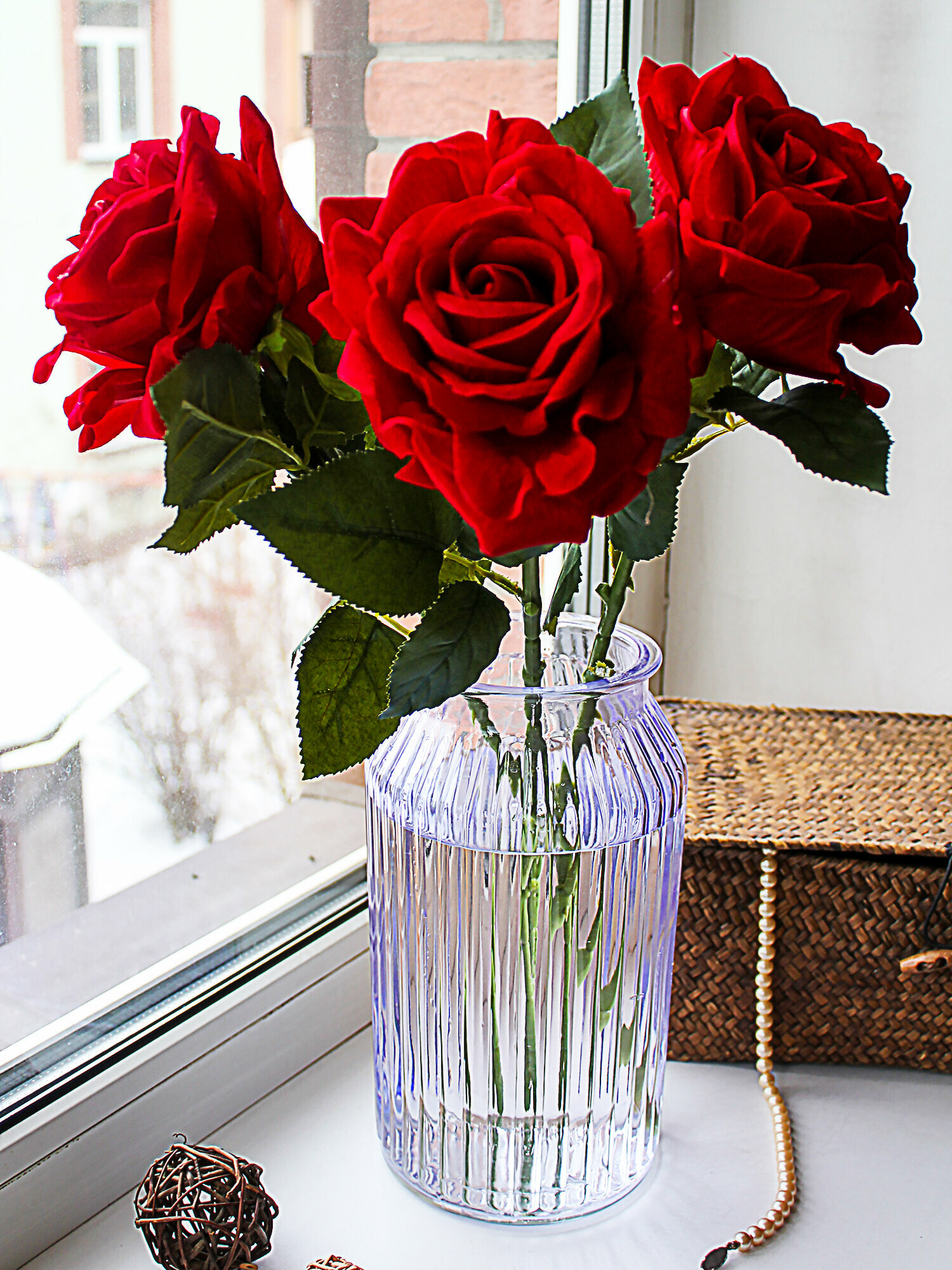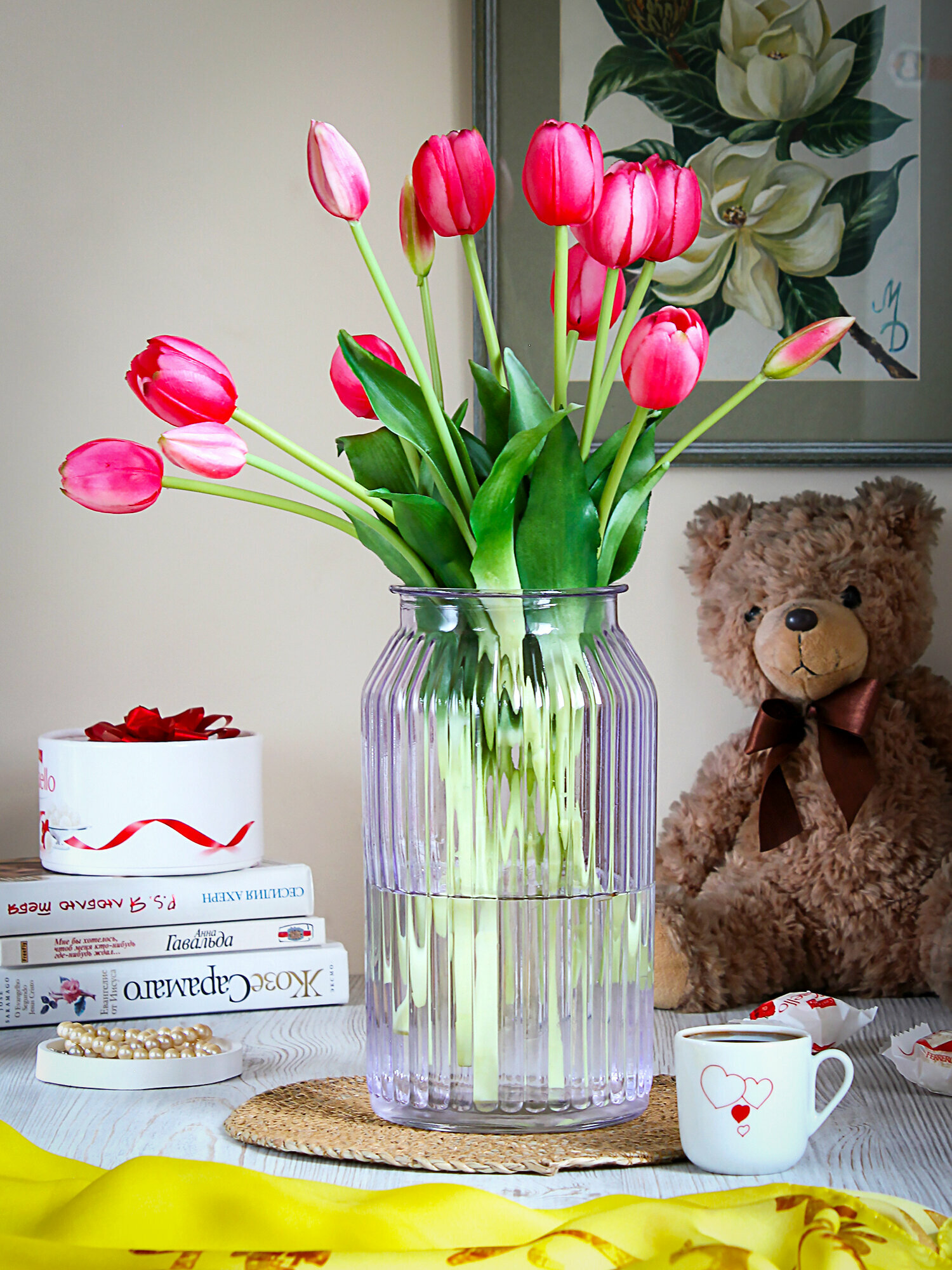 Высокая стеклянная ваза для цветов 24 см интересное: