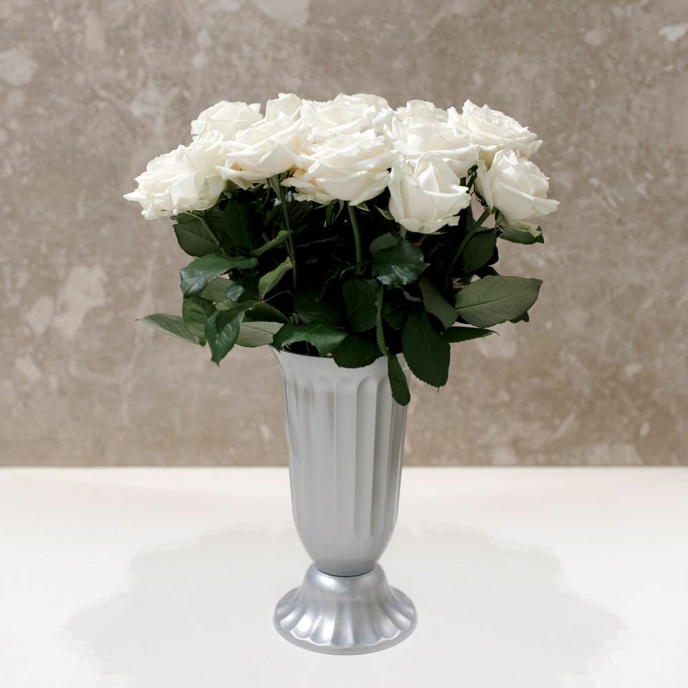 Ваза для цветов, напольная пластиковая белая 30 см