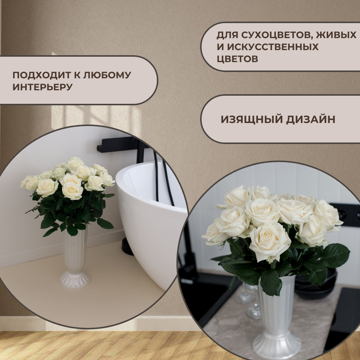 Ваза для цветов, напольная пластиковая белая 30 см интересное: