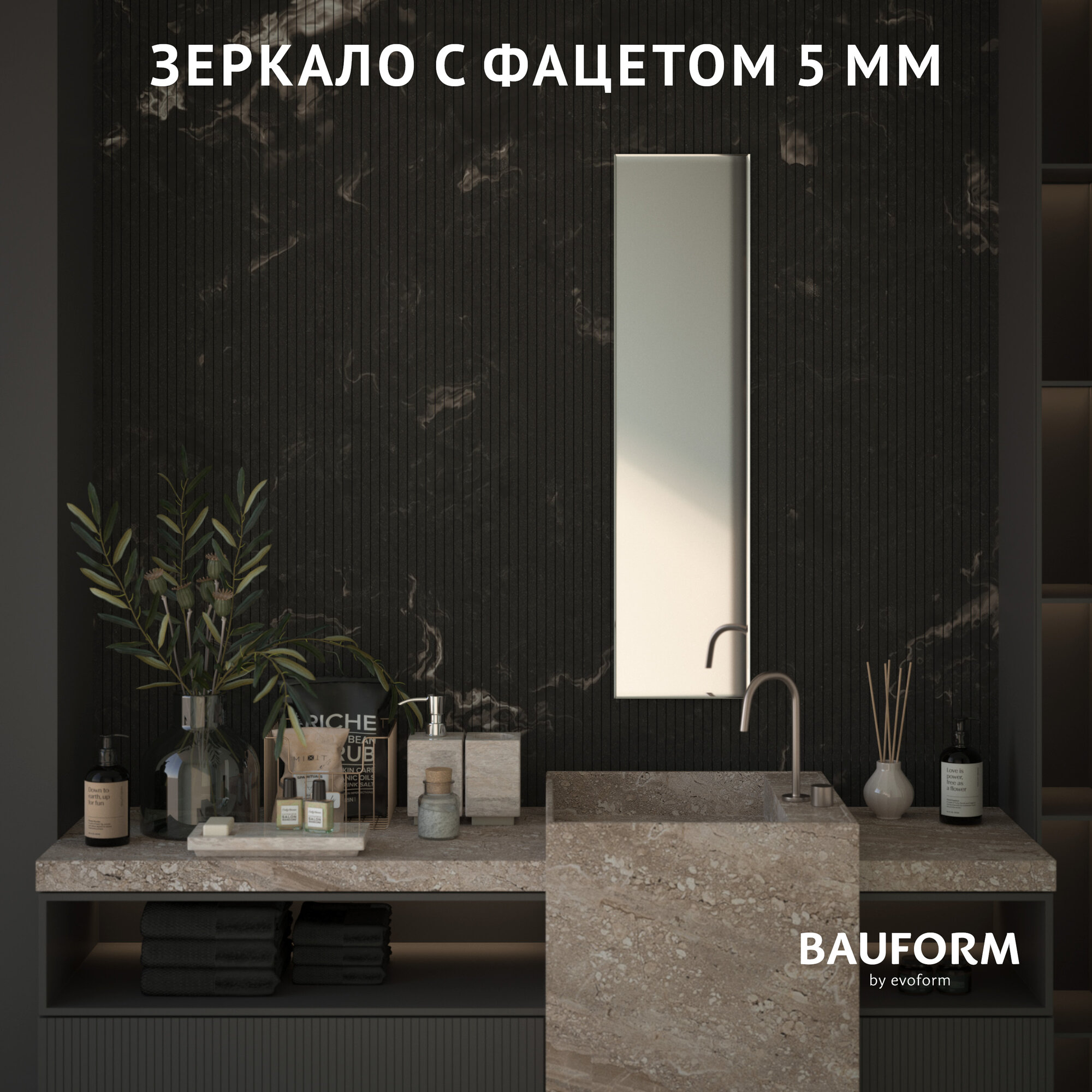 Зеркало настенное с фацетом Прямоугольное FACET 5 BAUFORM 30x120 см, для гостиной, прихожей, спальни, кабинета и ванной комнаты, SP 9763 интересное: