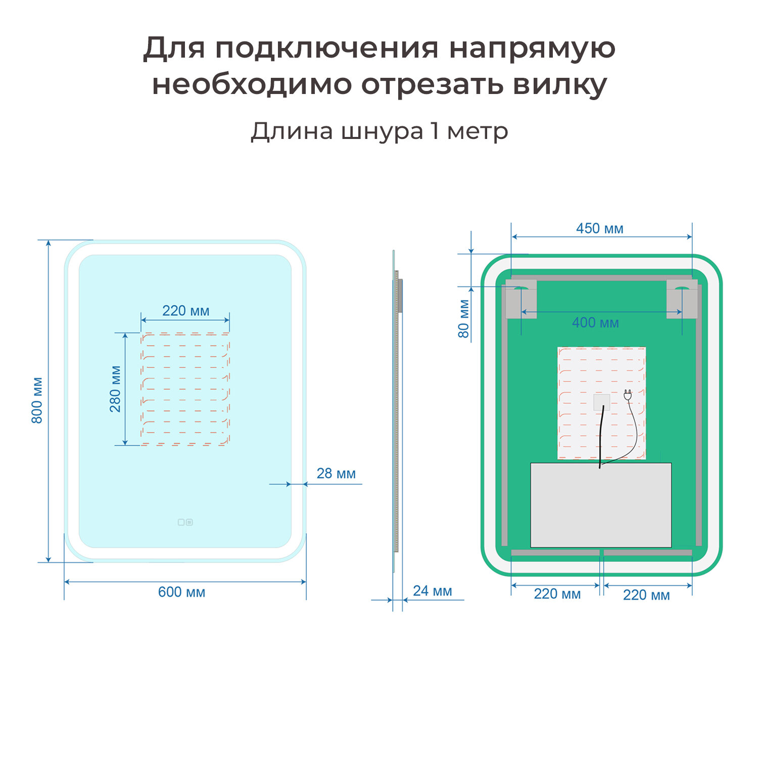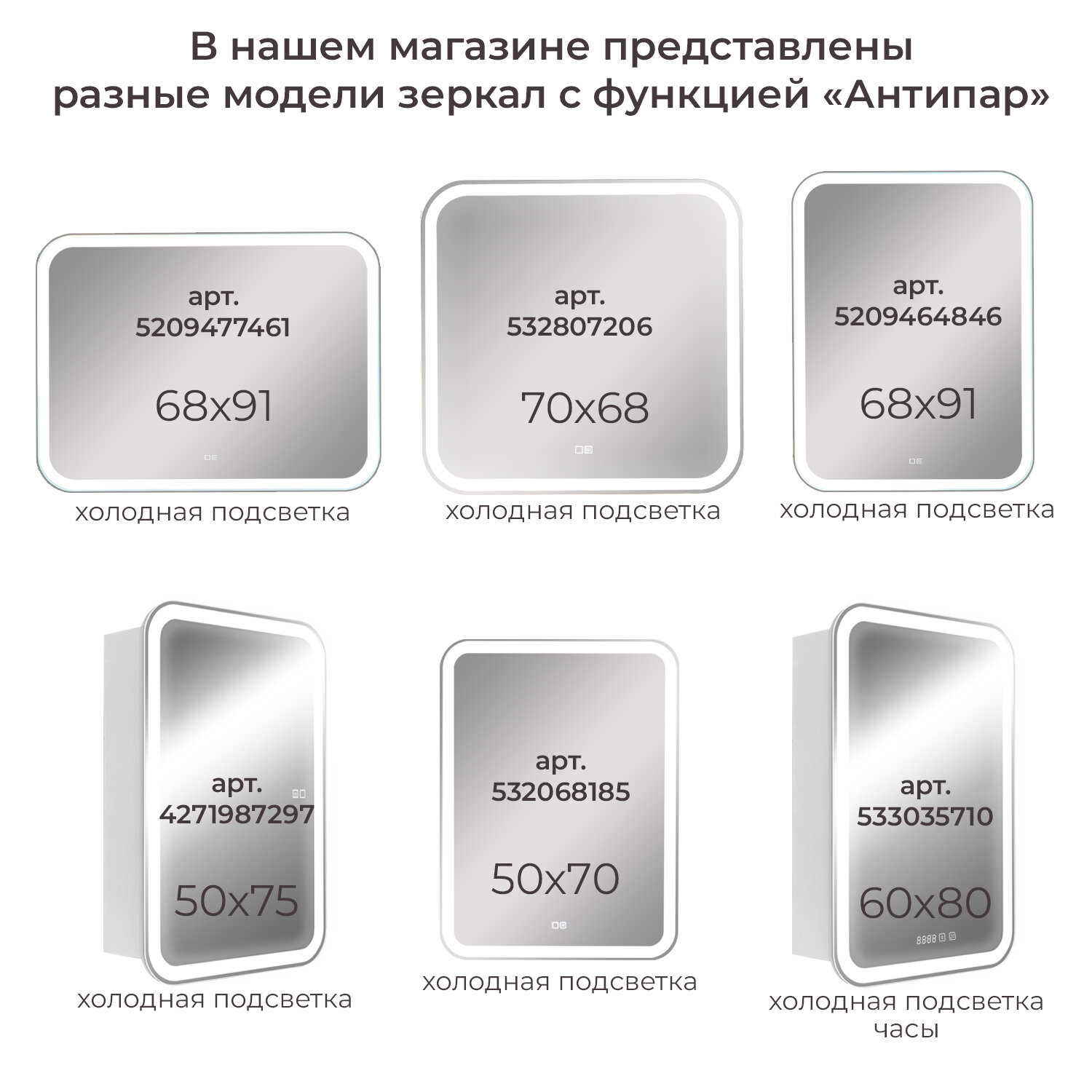 Зеркало с подсветкой в ванную Silver Mirrors "Мира-2" с подогревом, холодный свет, 60x80 см интересное: