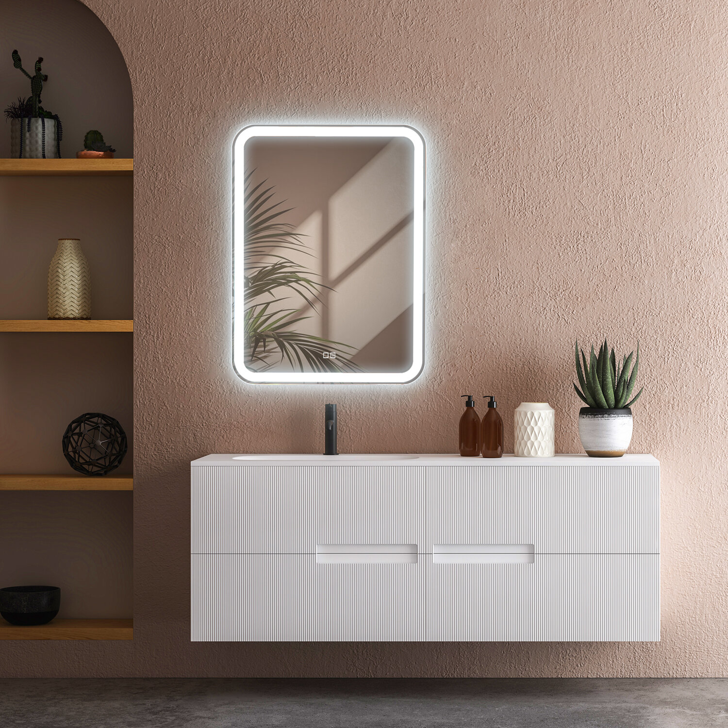 Зеркало настенное для ванной КерамаМане 70*100 см с холодной подсветкой 6000 К с сенсорной кнопкой