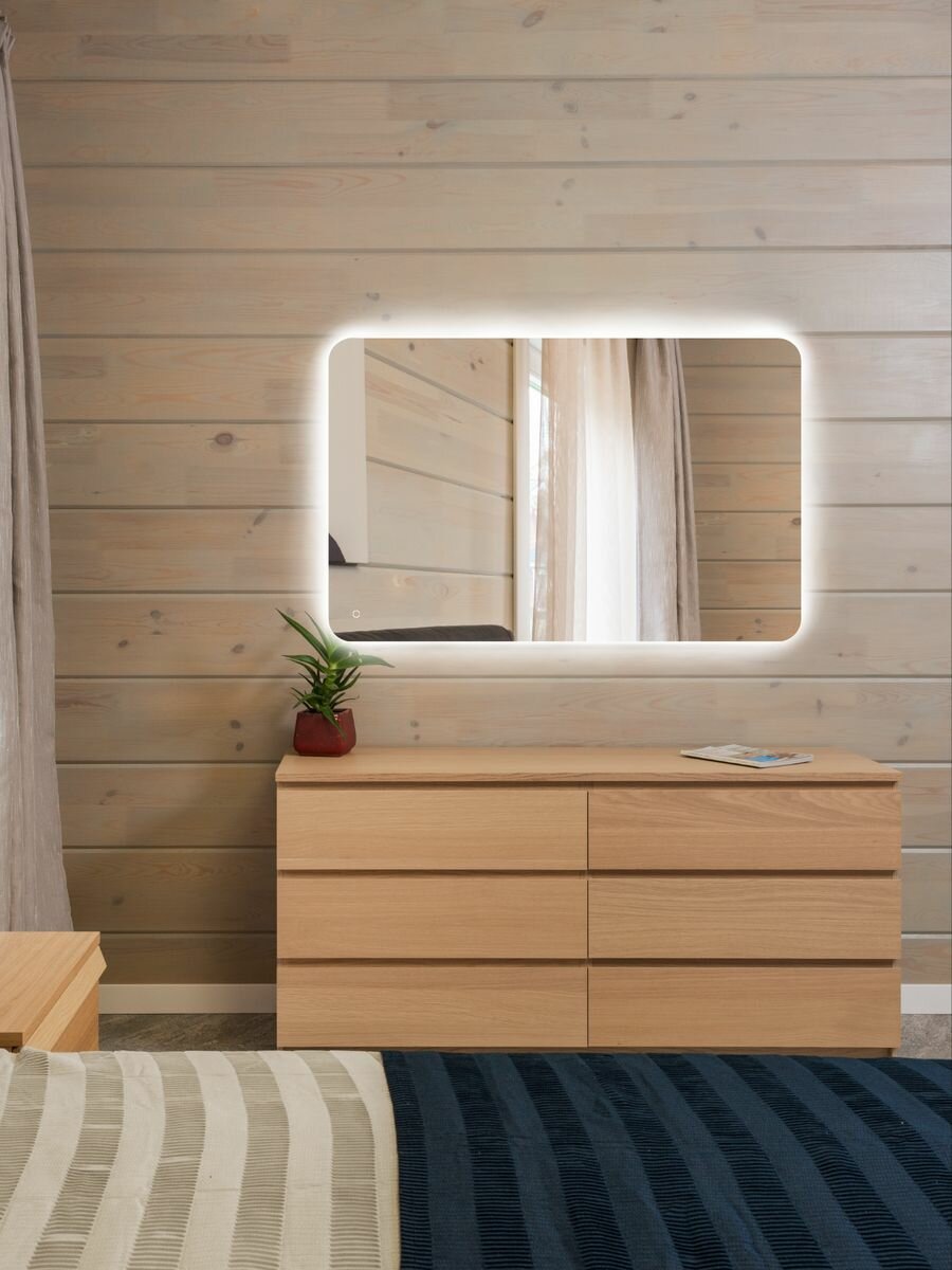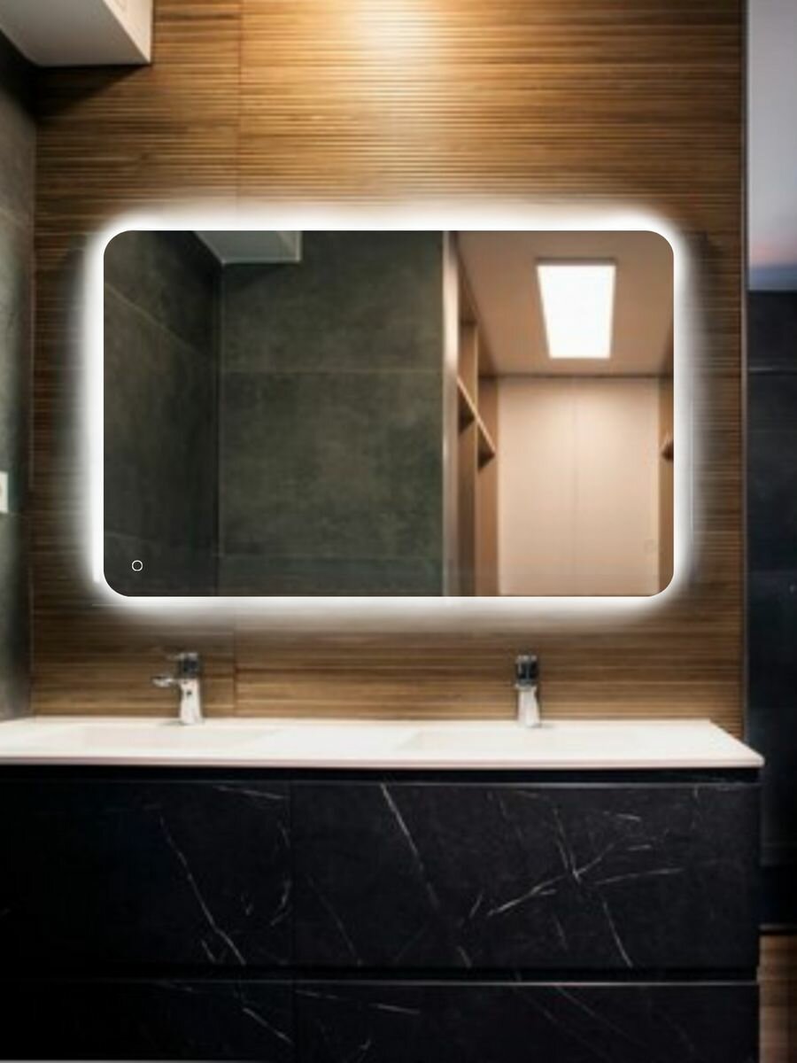 Зеркало настенное для ванной КерамаМане 70*100 см с холодной подсветкой 6000 К с сенсорной кнопкой