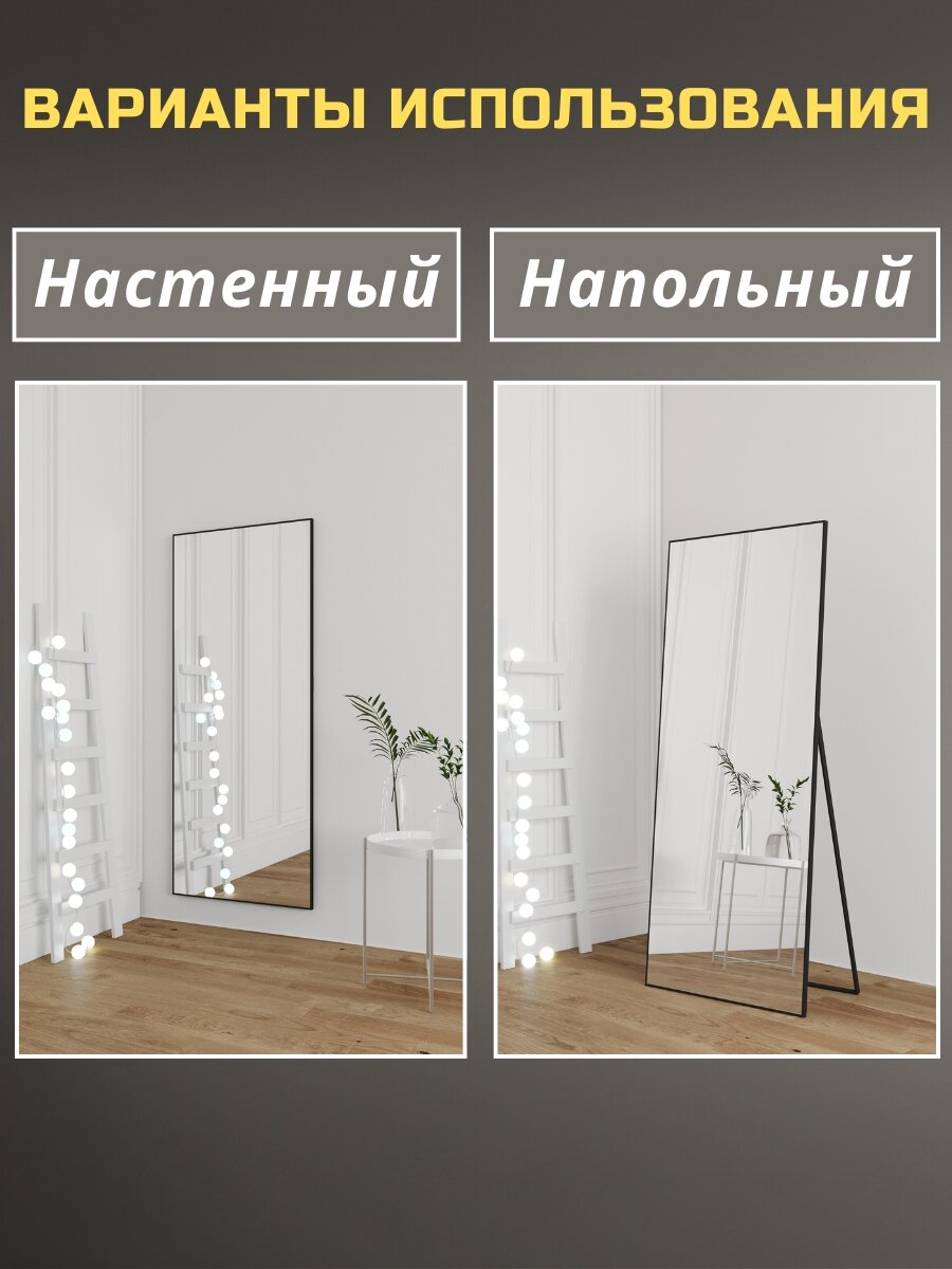 Зеркало напольное в полный рост 80х160 см черный в алюминиевой раме на пол, большое зеркало ростовое