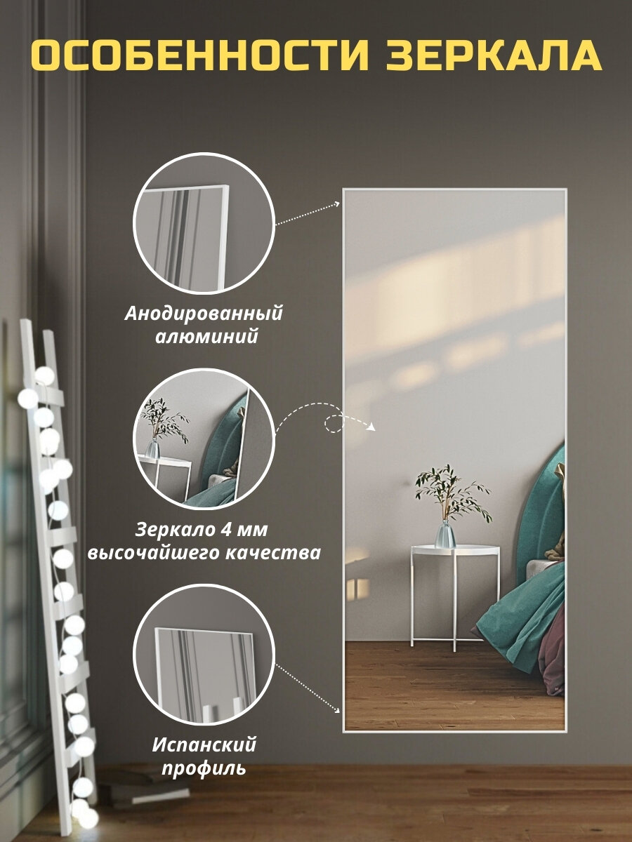 Напольное зеркало в полный рост 50х170 см в алюминиевой раме на пол или на стену