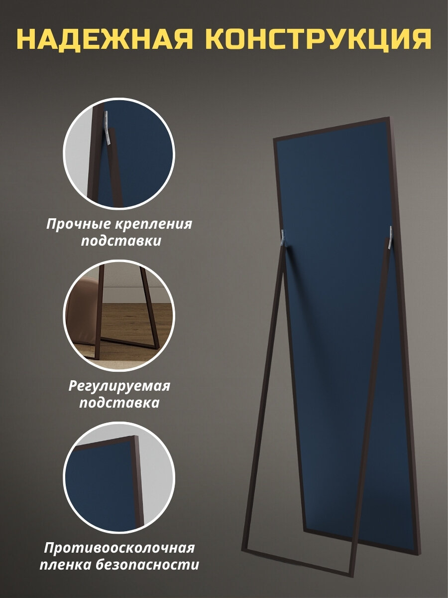 Зеркало напольное в полный рост 50х170см цвет темно-коричневый, зеркало в алюминиевой раме на пол или на стену, большое зеркало