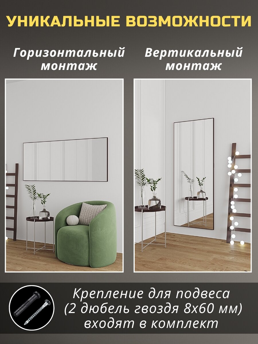 Зеркало настенное в полный рост 60х170см венге в алюминиевой раме на пол или на стену, большое напольное зеркало