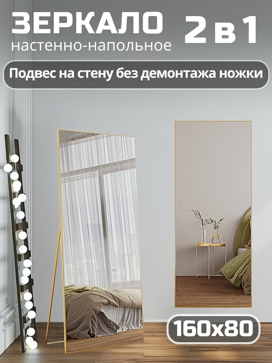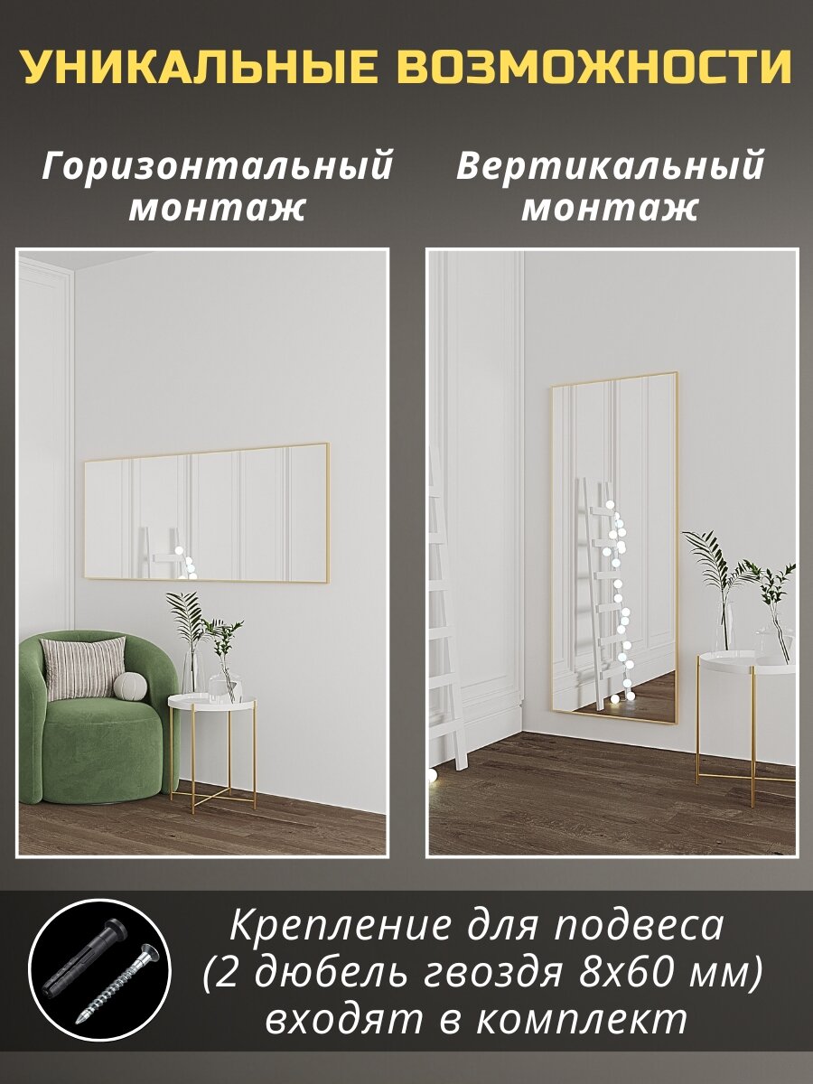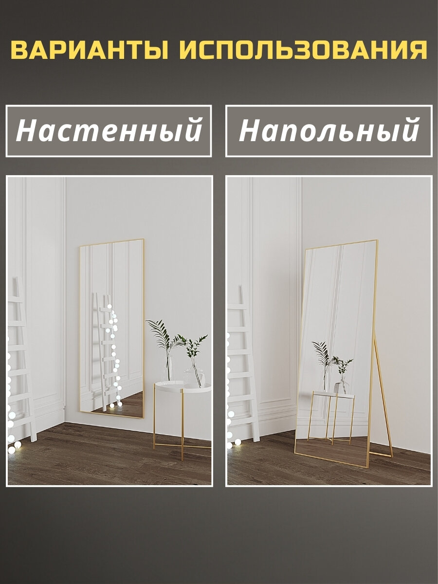 Зеркало напольное в полный рост 50х170 см матовое золото в алюминиевой раме на пол или на стену, большое зеркало