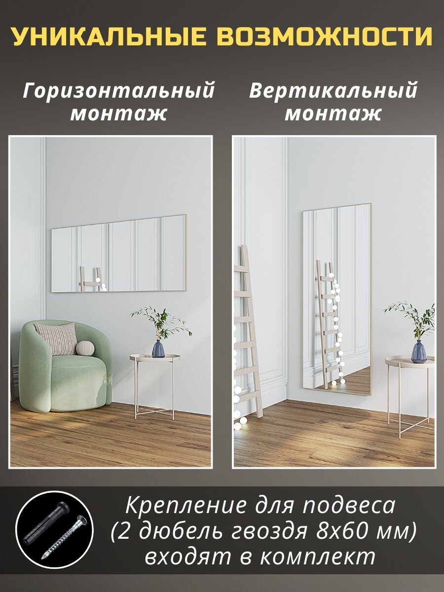 Зеркало интерьерное 160х70 см, декор для стен на пол, Toda Alma