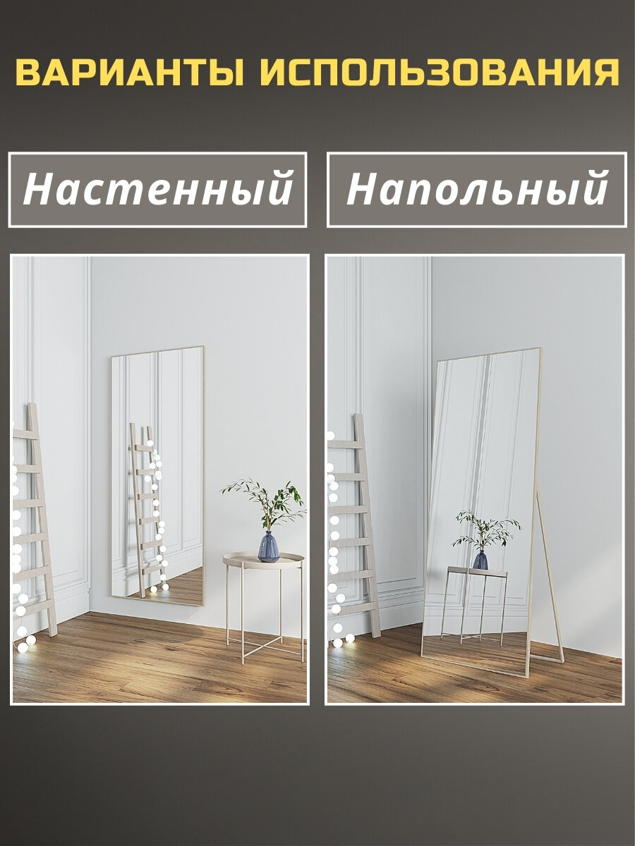 Зеркало напольное в полный рост 50х170 см матовое золото в алюминиевой раме на пол или на стену, большое зеркало