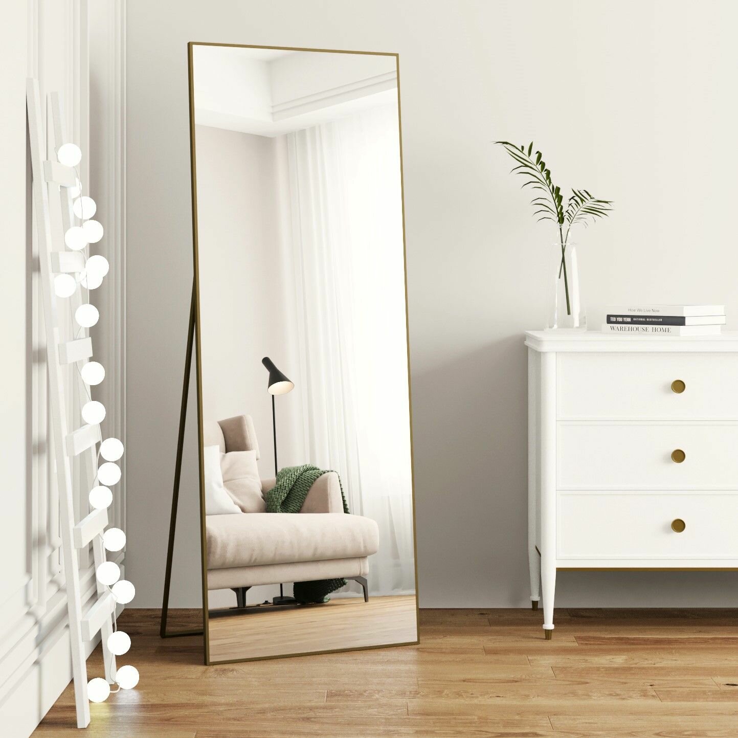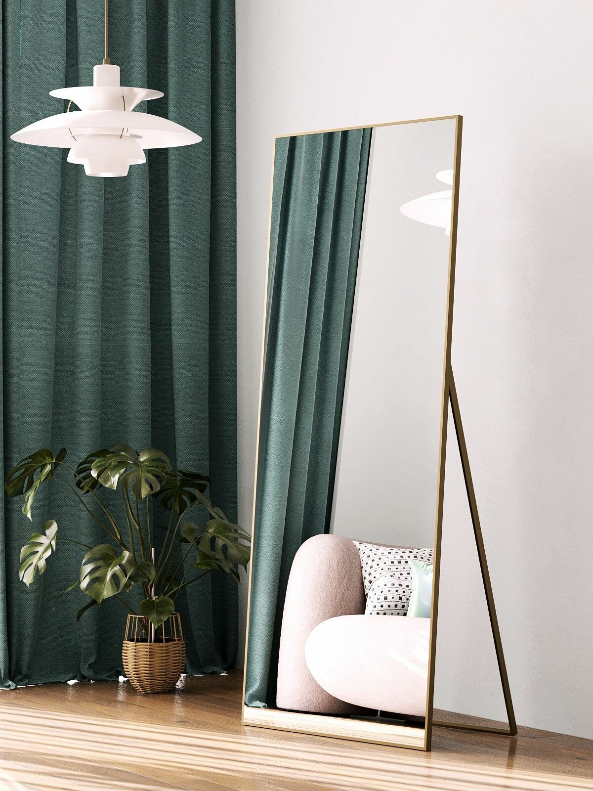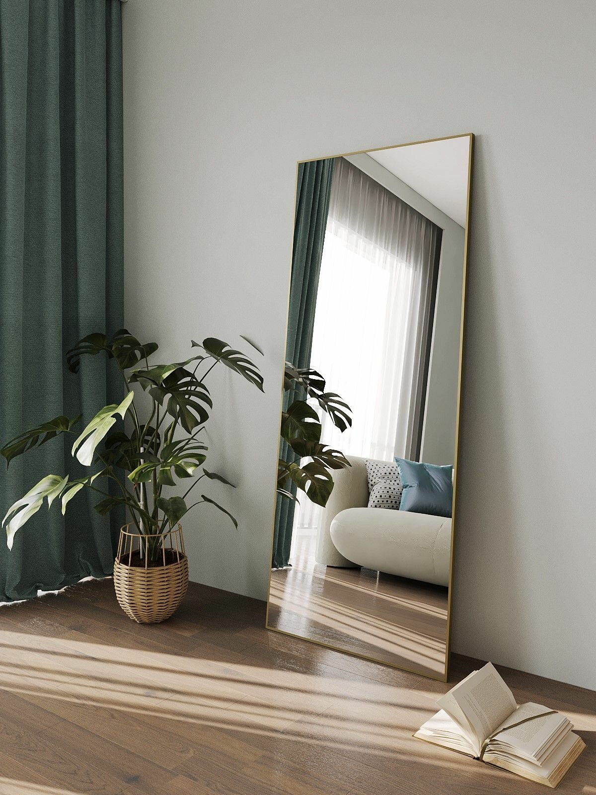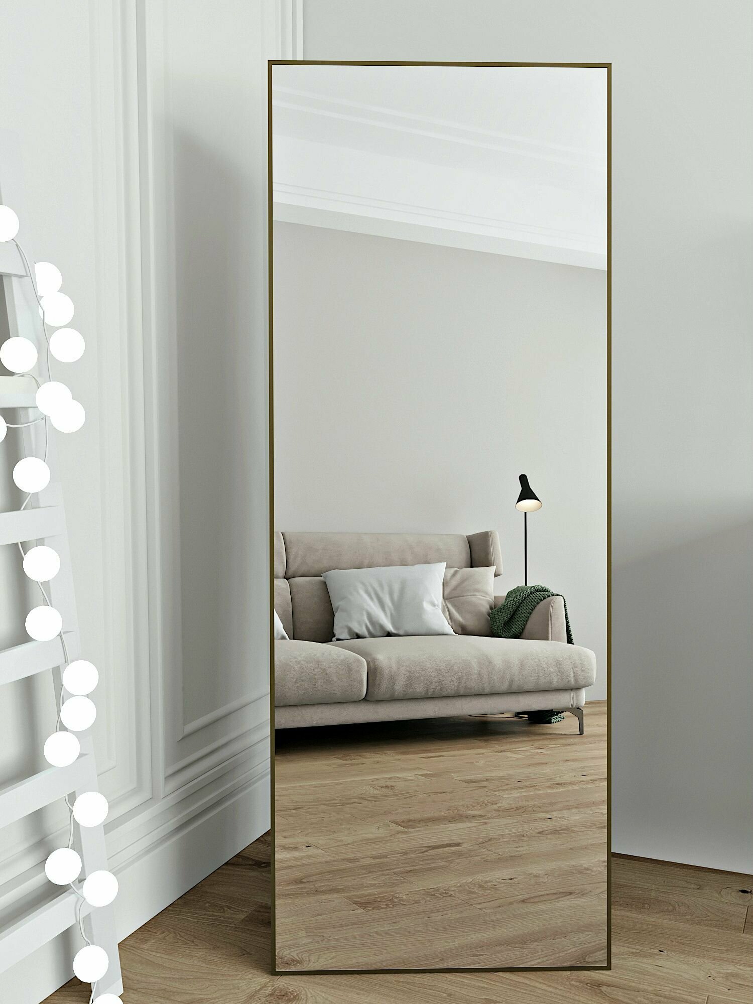 Зеркало напольное в полный рост 50х170 см матовое золото в алюминиевой раме на пол или на стену, большое зеркало
