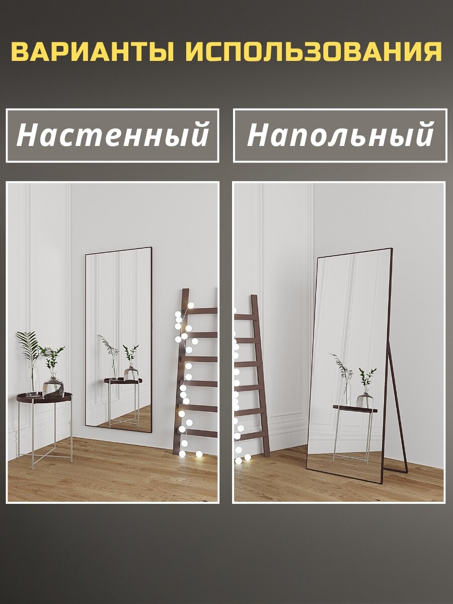 Зеркало напольное в полный рост 50х170см цвет темно-коричневый, зеркало в алюминиевой раме на пол или на стену, большое зеркало