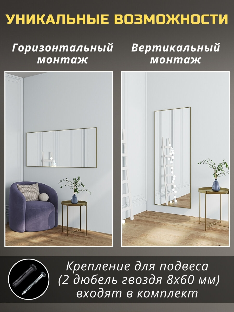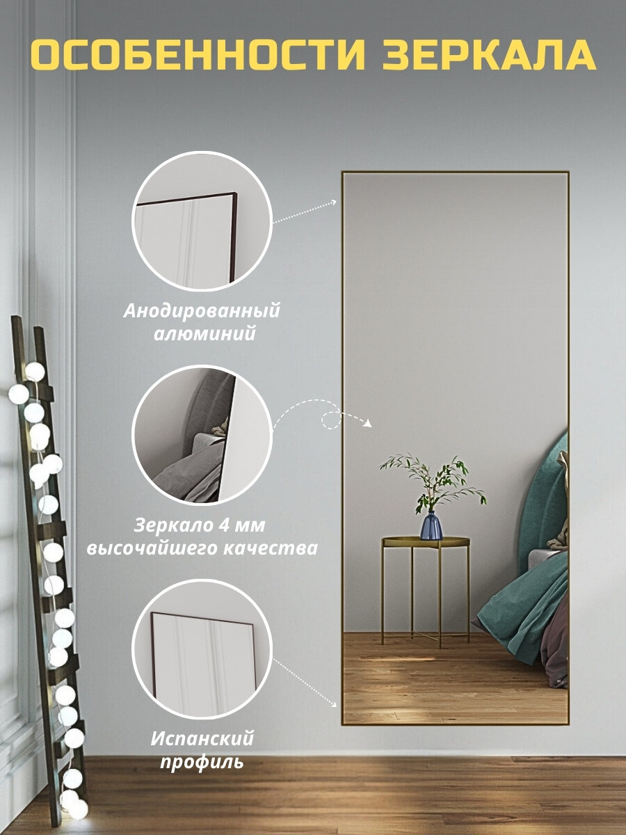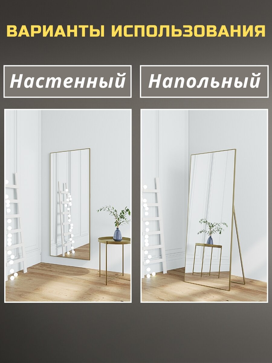 Зеркало напольное в полный рост 50х170 см матовое золото в алюминиевой раме на пол или на стену, большое зеркало