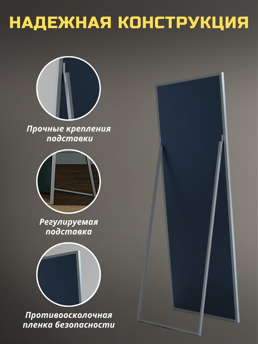 Напольное зеркало в полный рост 50х170 см в алюминиевой раме на пол или на стену