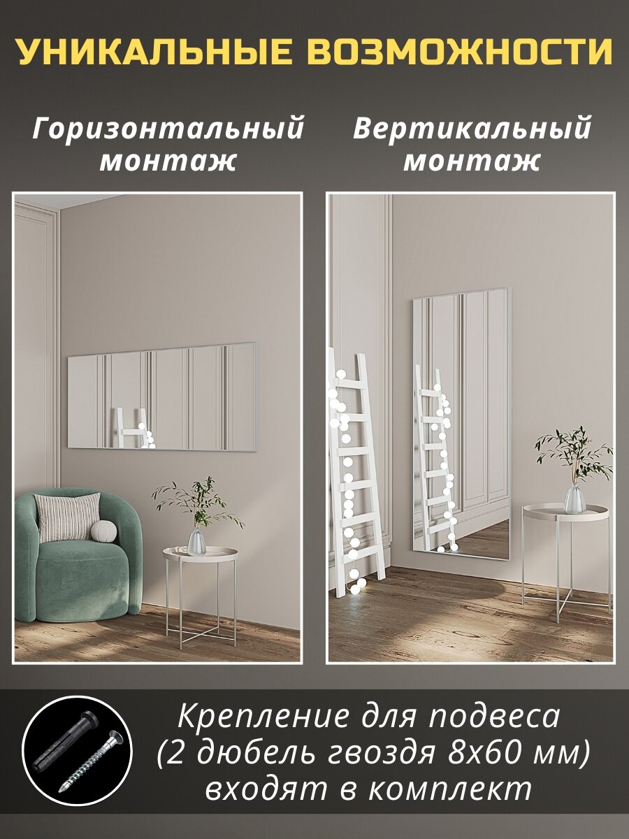 Зеркало настенное в полный рост 50х170 см цвет серебро, зеркало напольное во весь рост