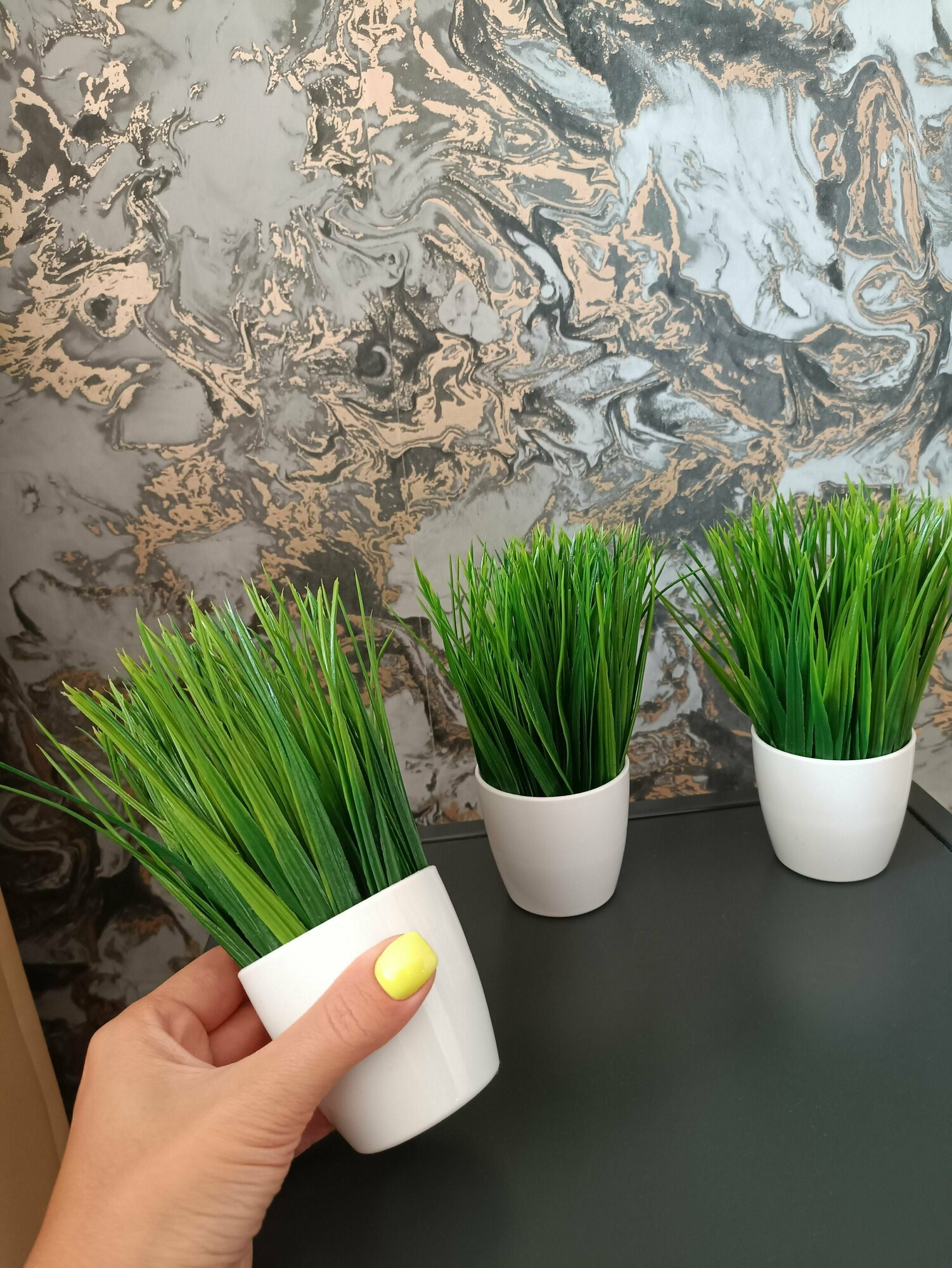 Трава в кашпо, набор 5 шт. Высота 16 см, композиция искусственная осока в кашпо, зелень в горшке для декора дома, дачи, кафе, кофейни интересное: