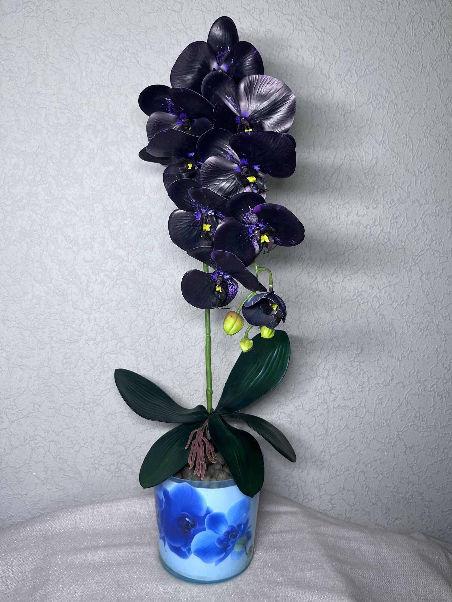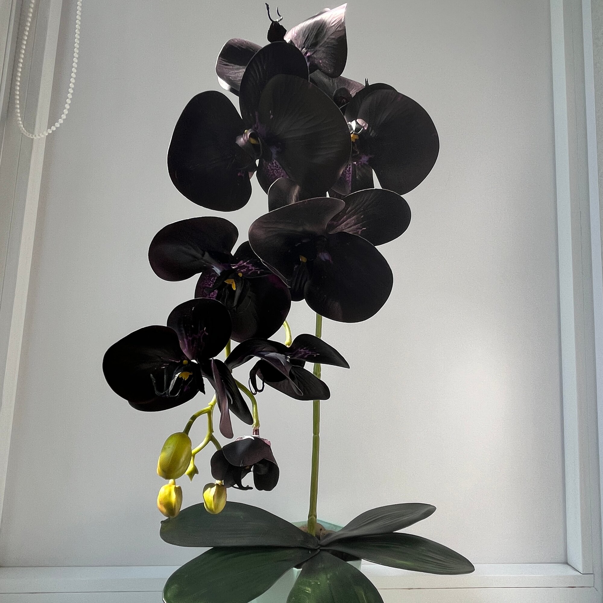 Искусственные цветы для декора. Орхидея "Черный принц" 78см, 9 голов, в подарок листья с корнями интересное: