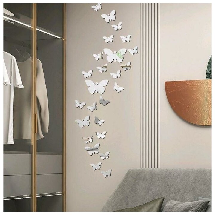 Наклейка интерьерная зеркальная "Бабочки" 3D акрил 30 шт 11х15 см 7,5х10 см 5,3х7 см интересное:
