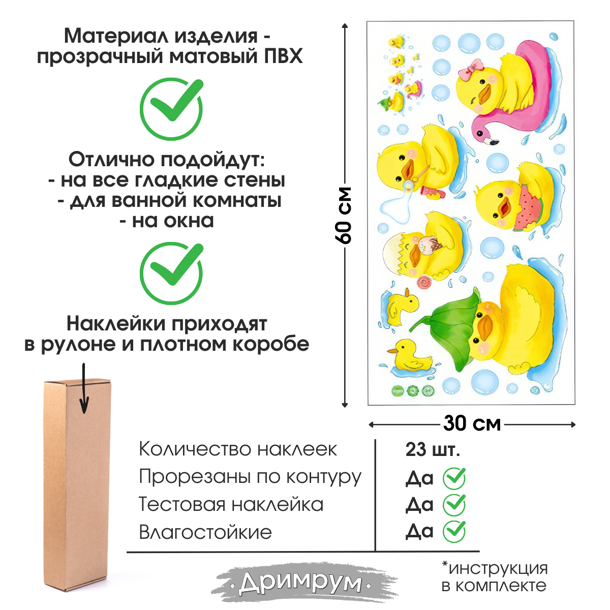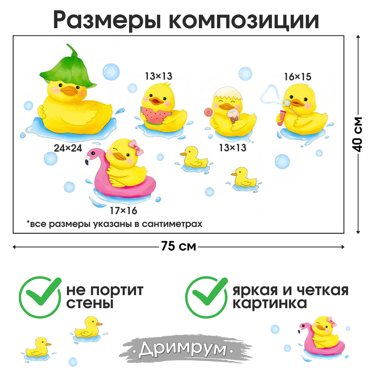 СохранитьНаклейка для ванной комнаты на стену для интерьера для детей Уточки 1 интересное: