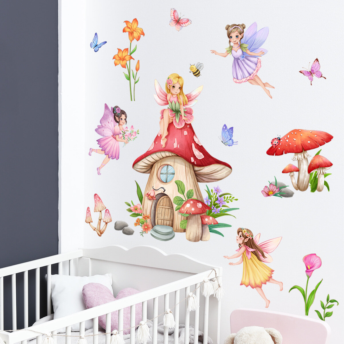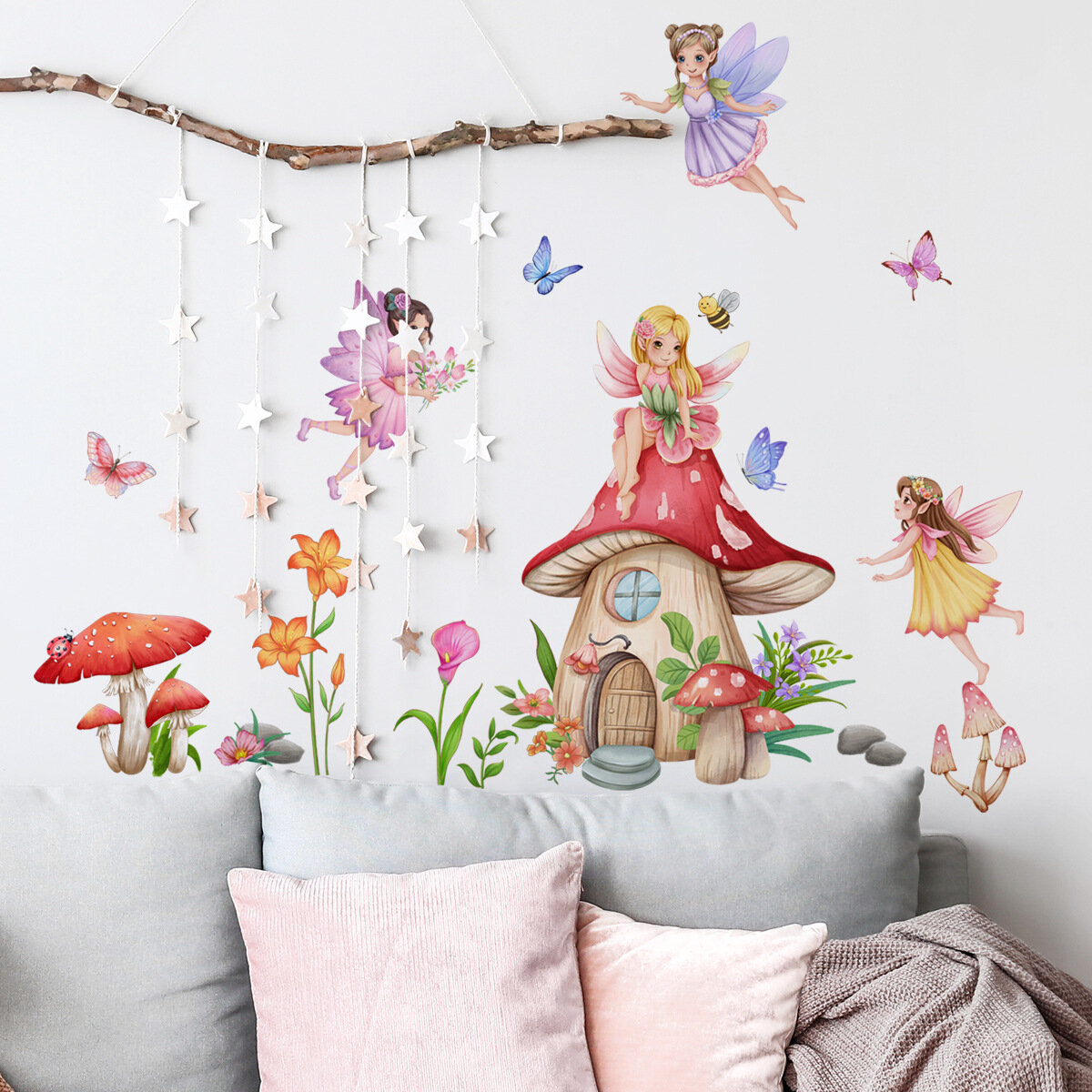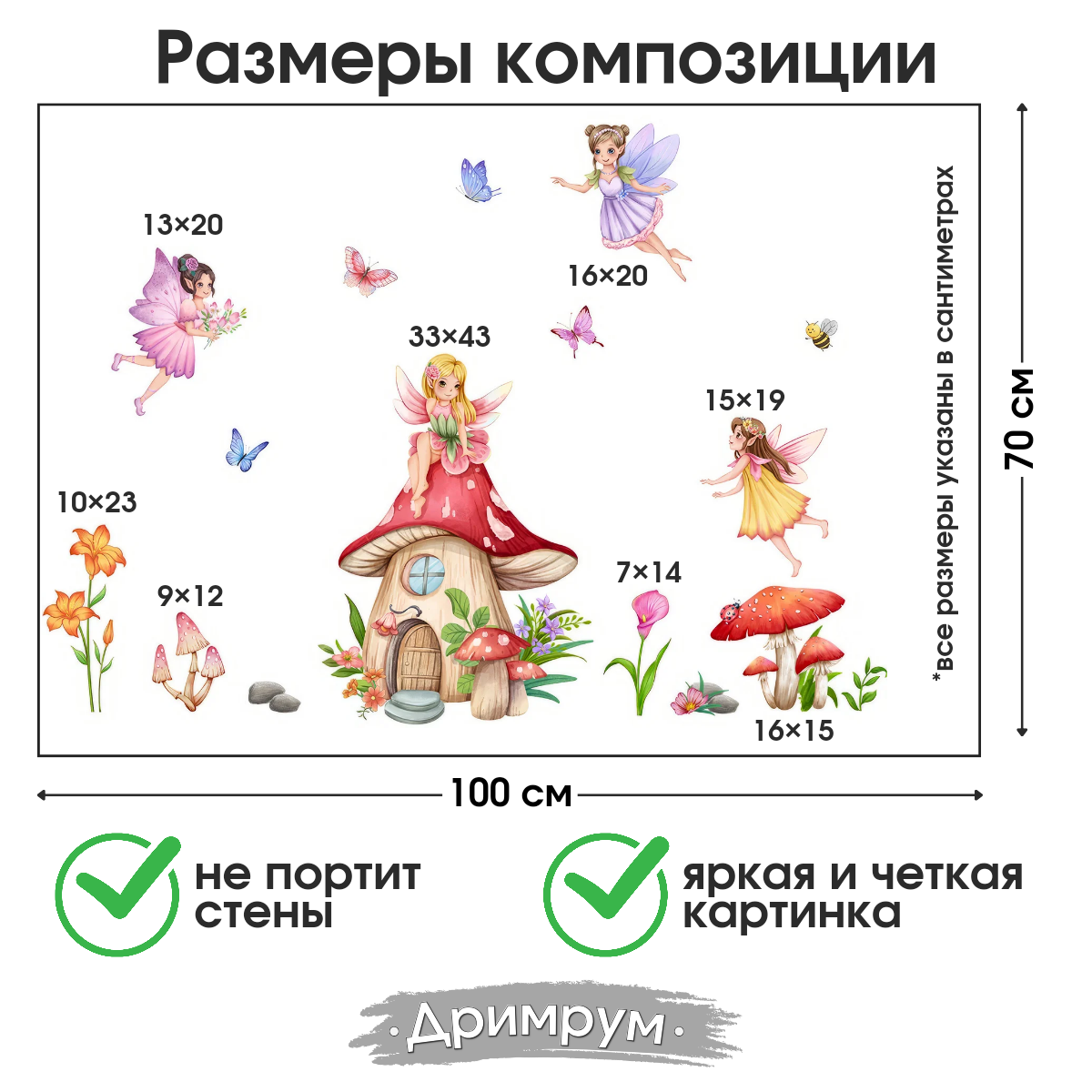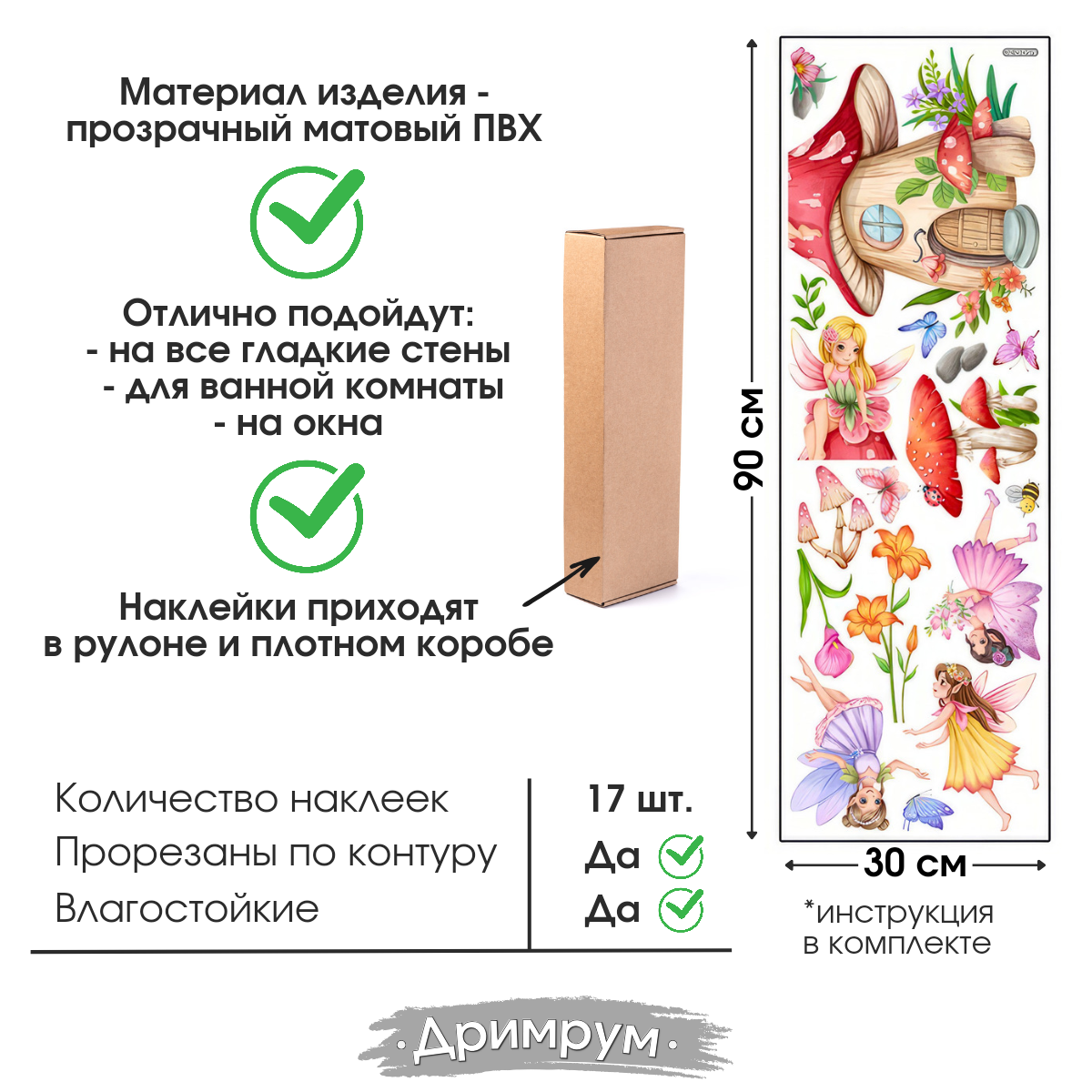 Наклейка на стену для интерьера для детей Грибные феи вальдорф