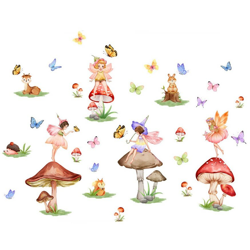 Купить Наклейка на стену для интерьера для детей Грибные феи вальдорф