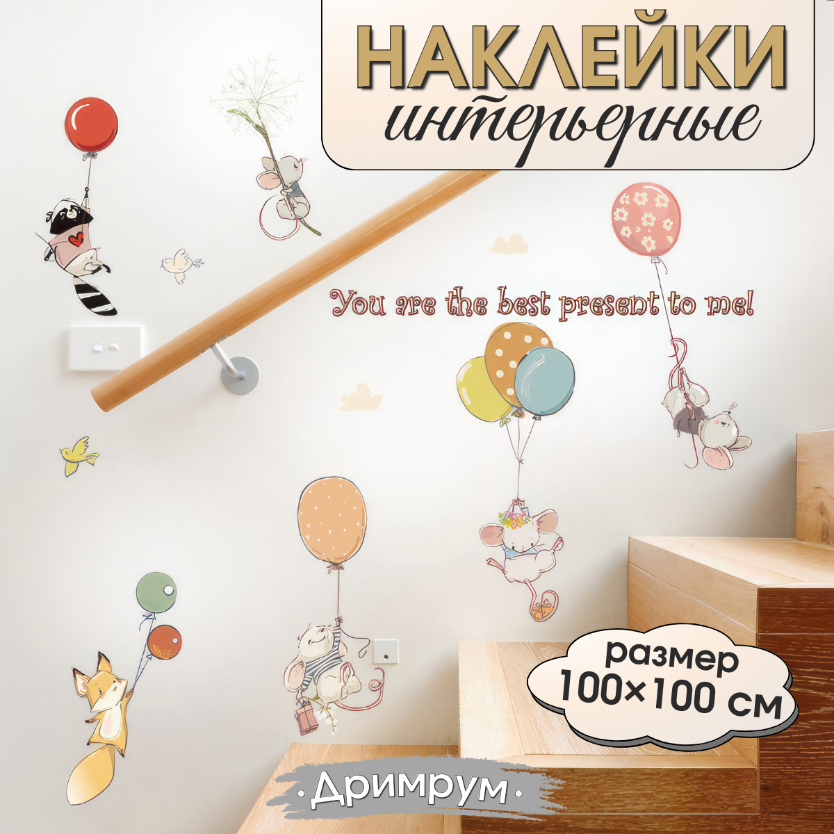 СохранитьНаклейка на стену для интерьера для детей Звери на шарах интересное: