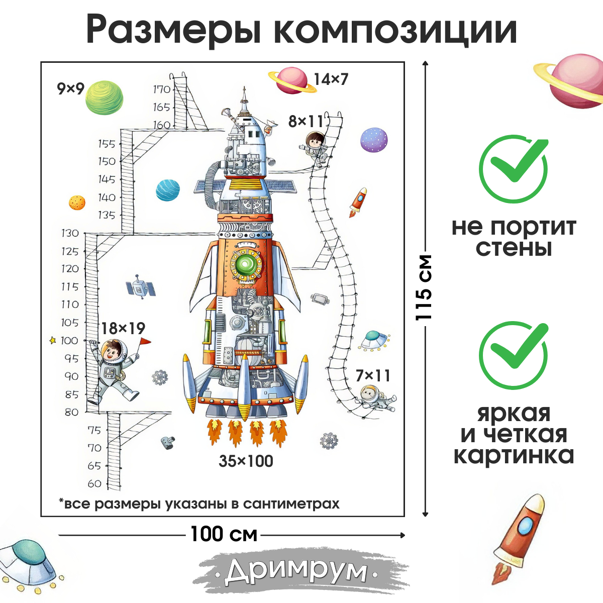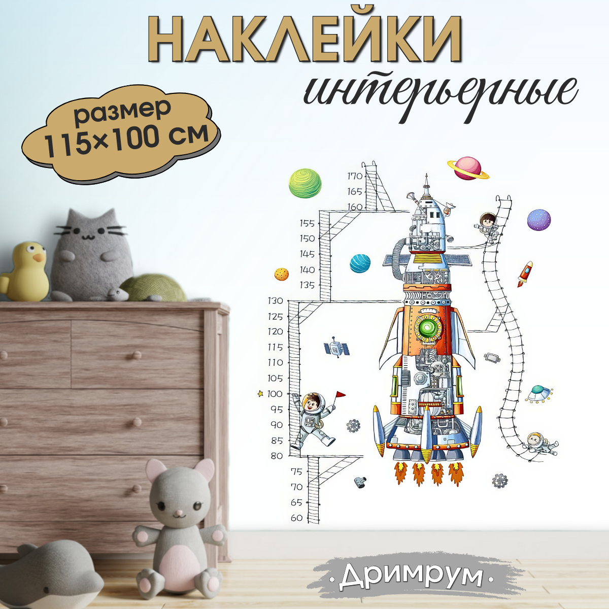 СохранитьНаклейка на стену для интерьера для детей Ракета с ростомером интересное: