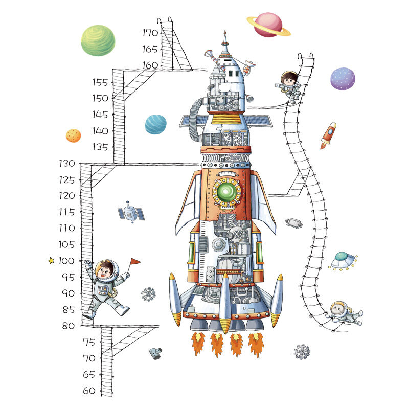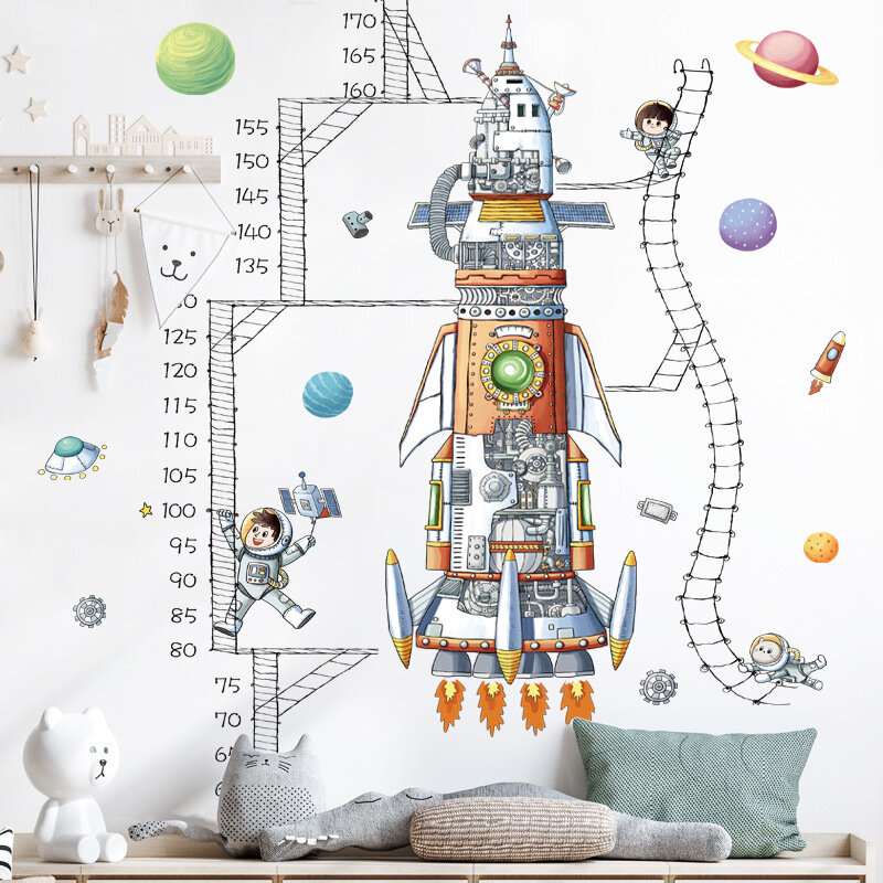 Купить Наклейка на стену для интерьера для детей Ракета с ростомером